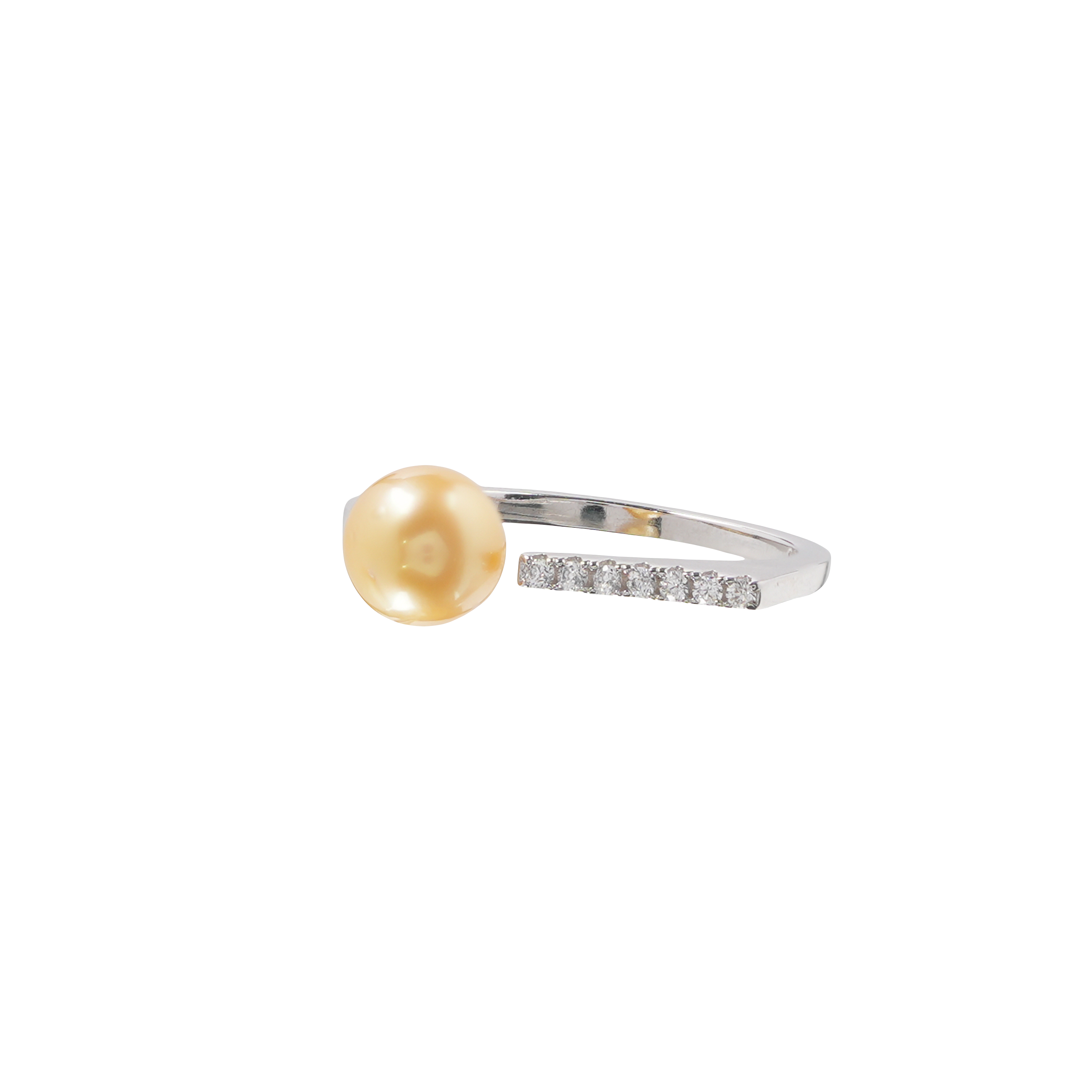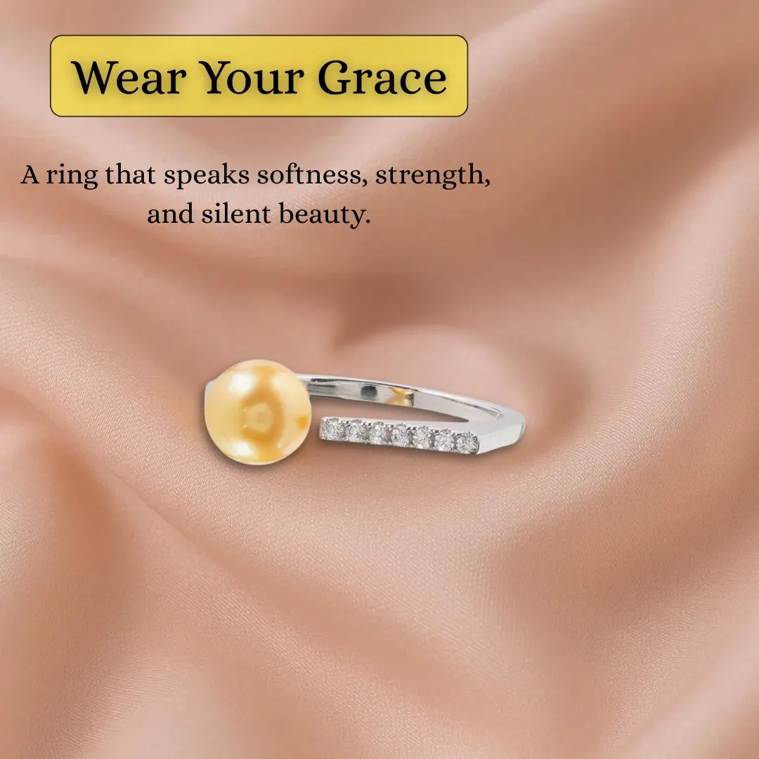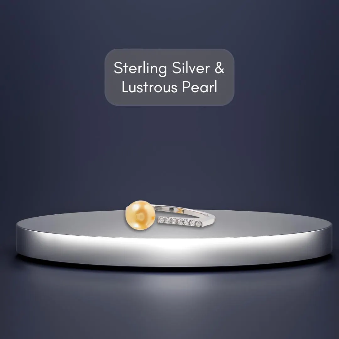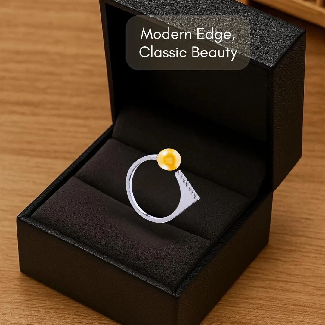 Contemporary Statement Jewelry for Women, A Modern Sterling Silver Ring with Golden Pearl and CZ Accents.