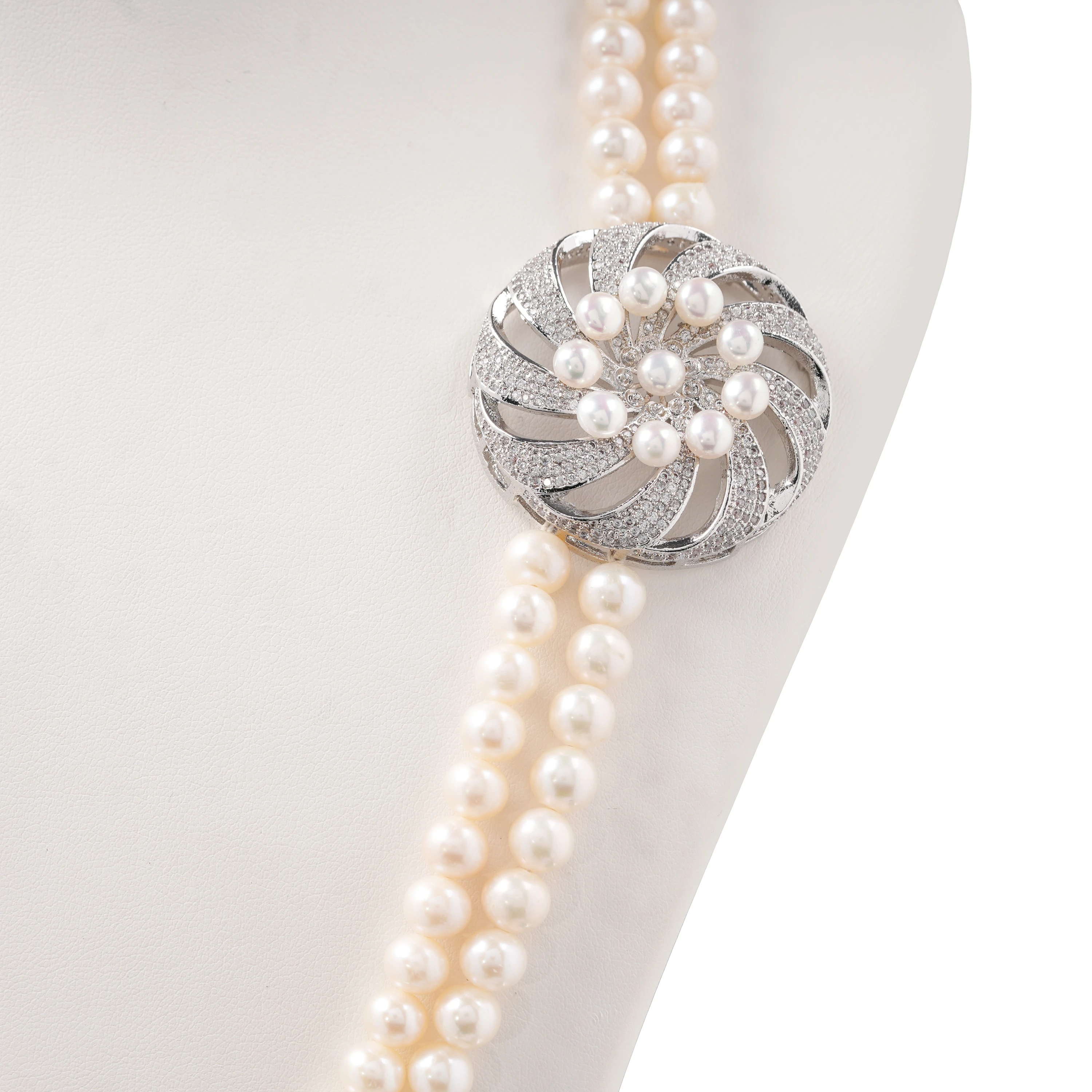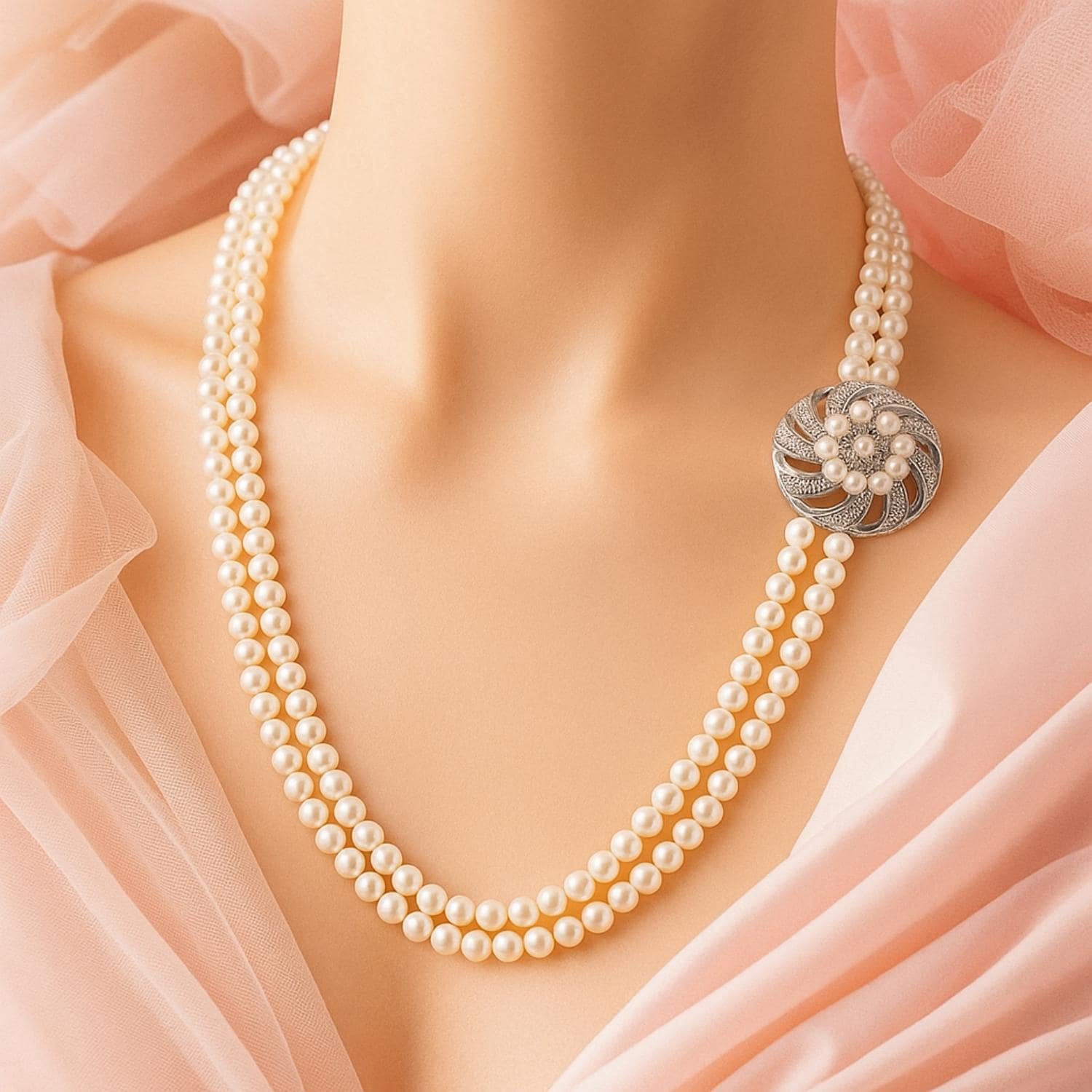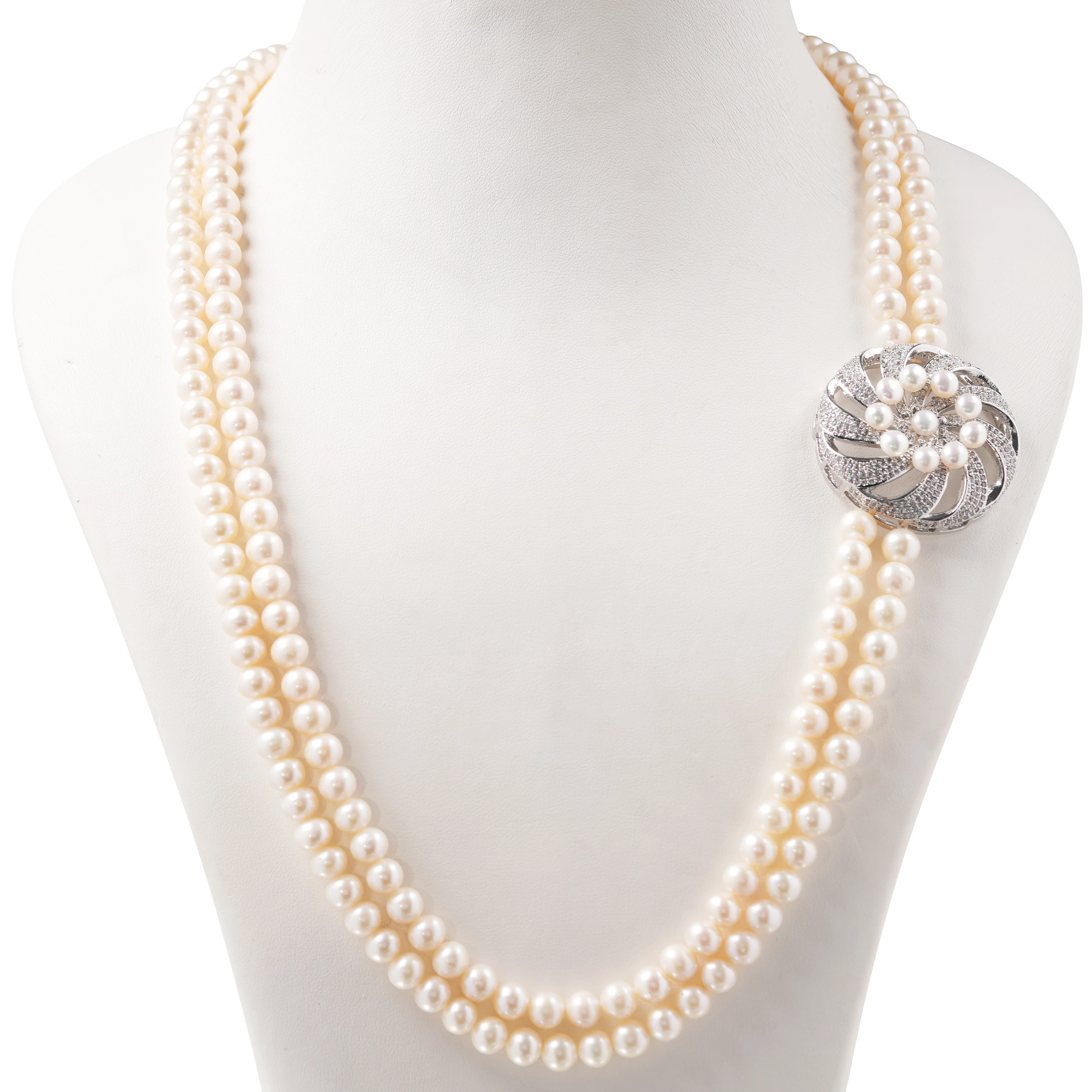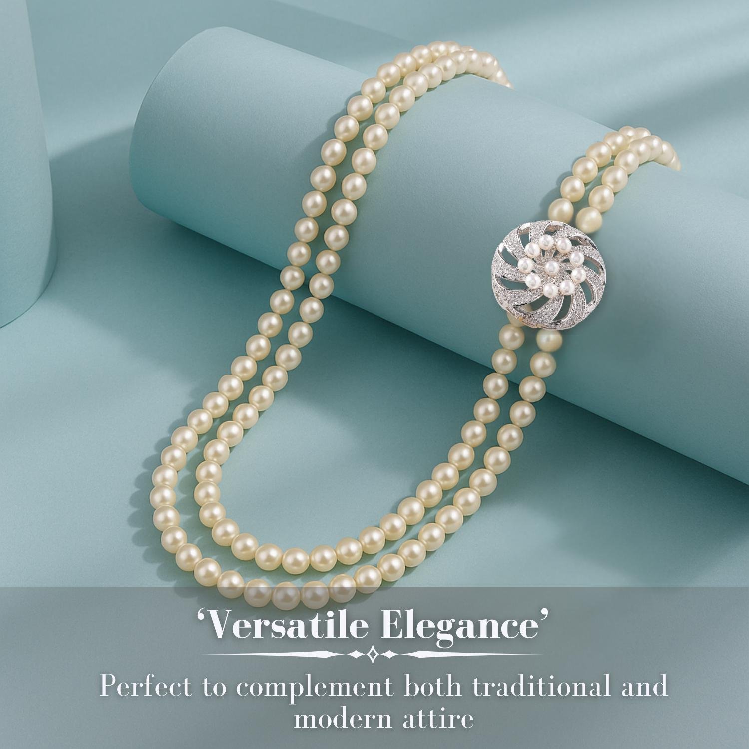 Double Strand White Pearl Necklace with Vintage Crystal Clasp, Classic Bridal Jewellery, Elegant Pearl Beaded Necklace Gift for Her