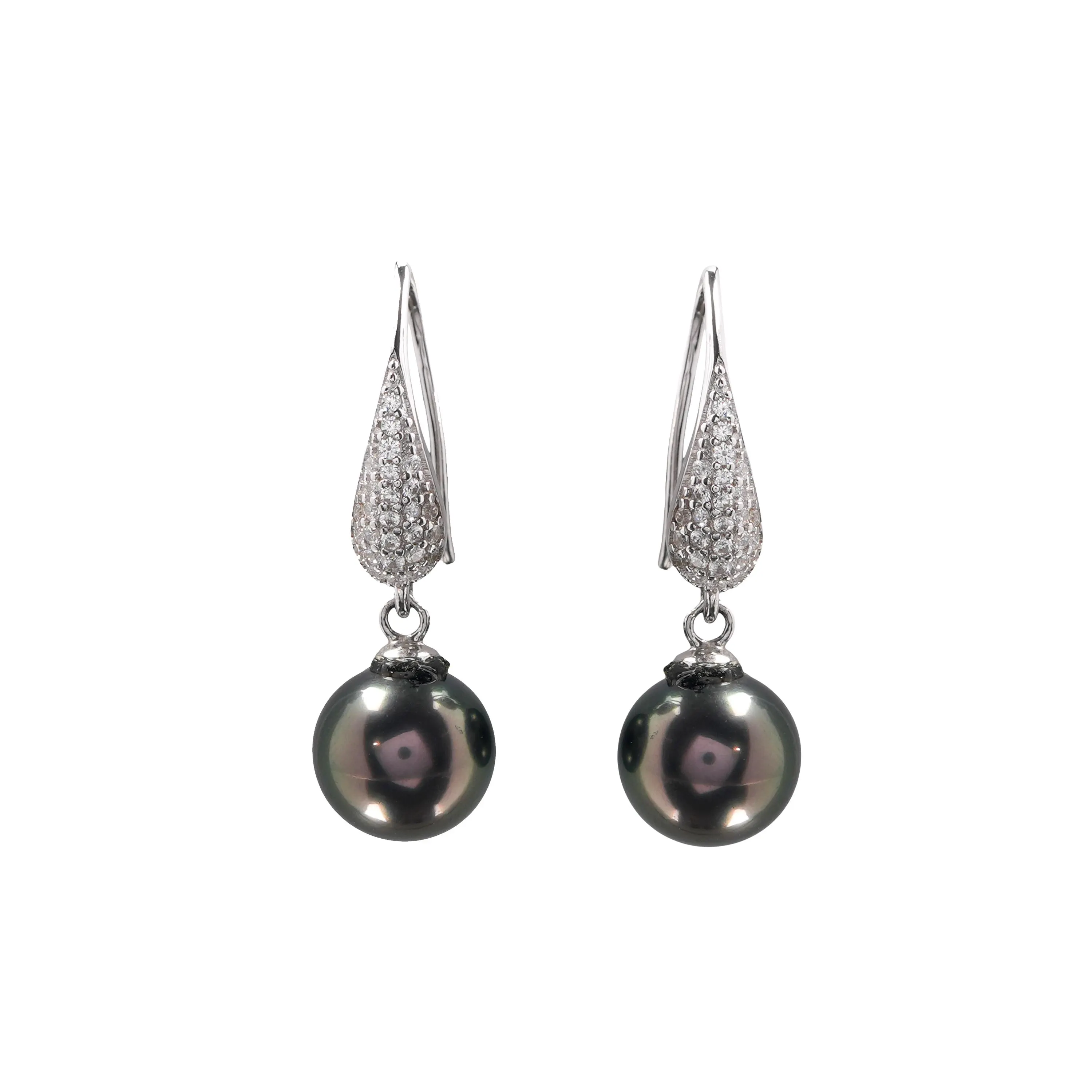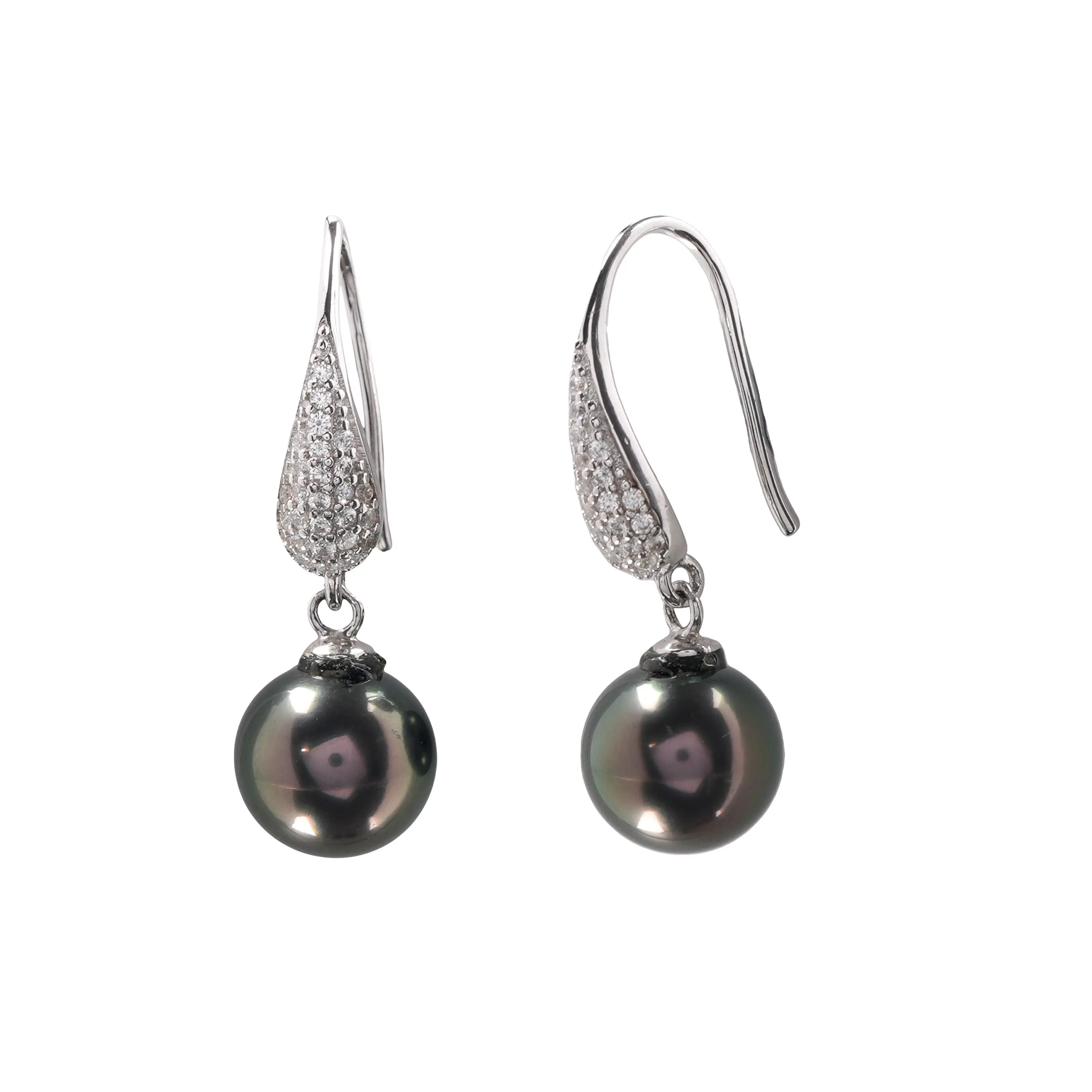 Elegant Black Tahitian Pearl Drop Earrings, Sterling Silver Dangle Earrings, Classic Pearl Jewellery Gift for Her