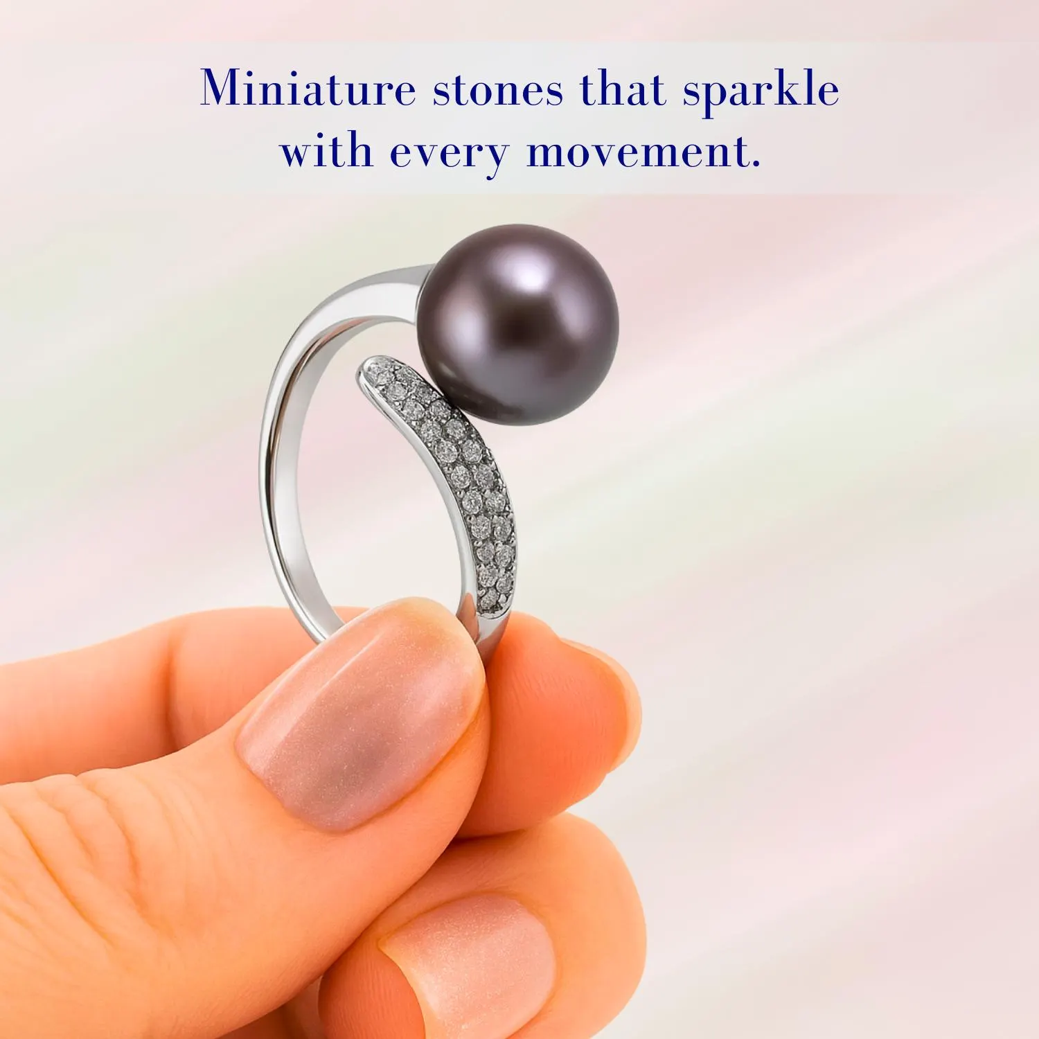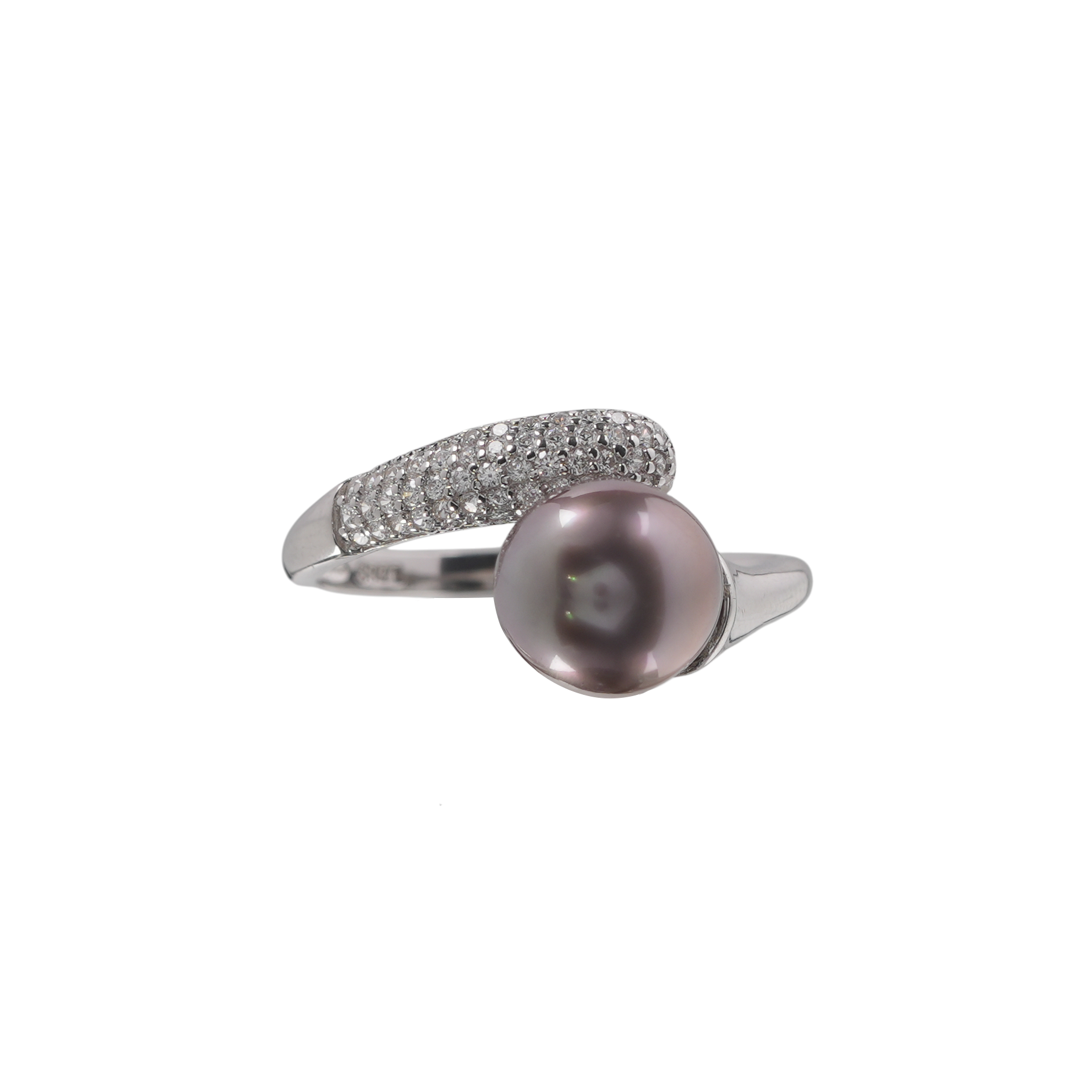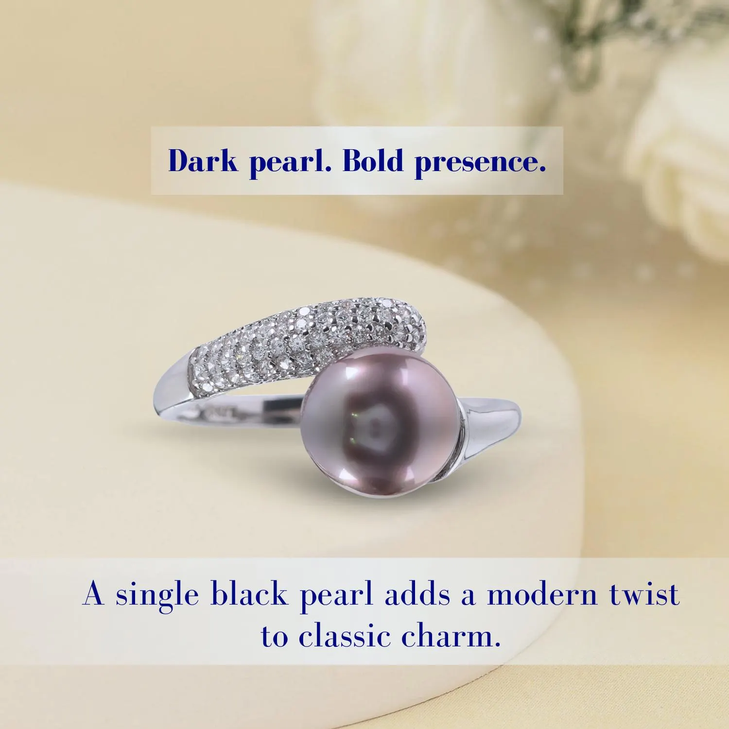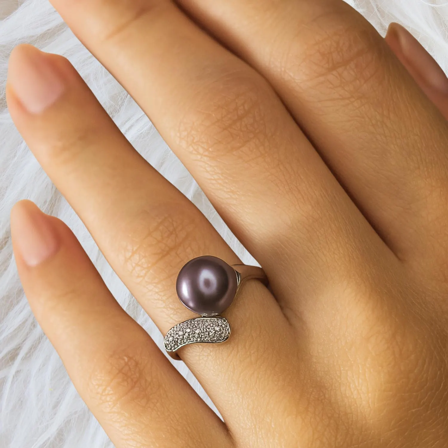 Elegant Black Pearl Ring in Sterling Silver with Sparkling Cubic Zirconia: A Modern Statement Gift for Her
