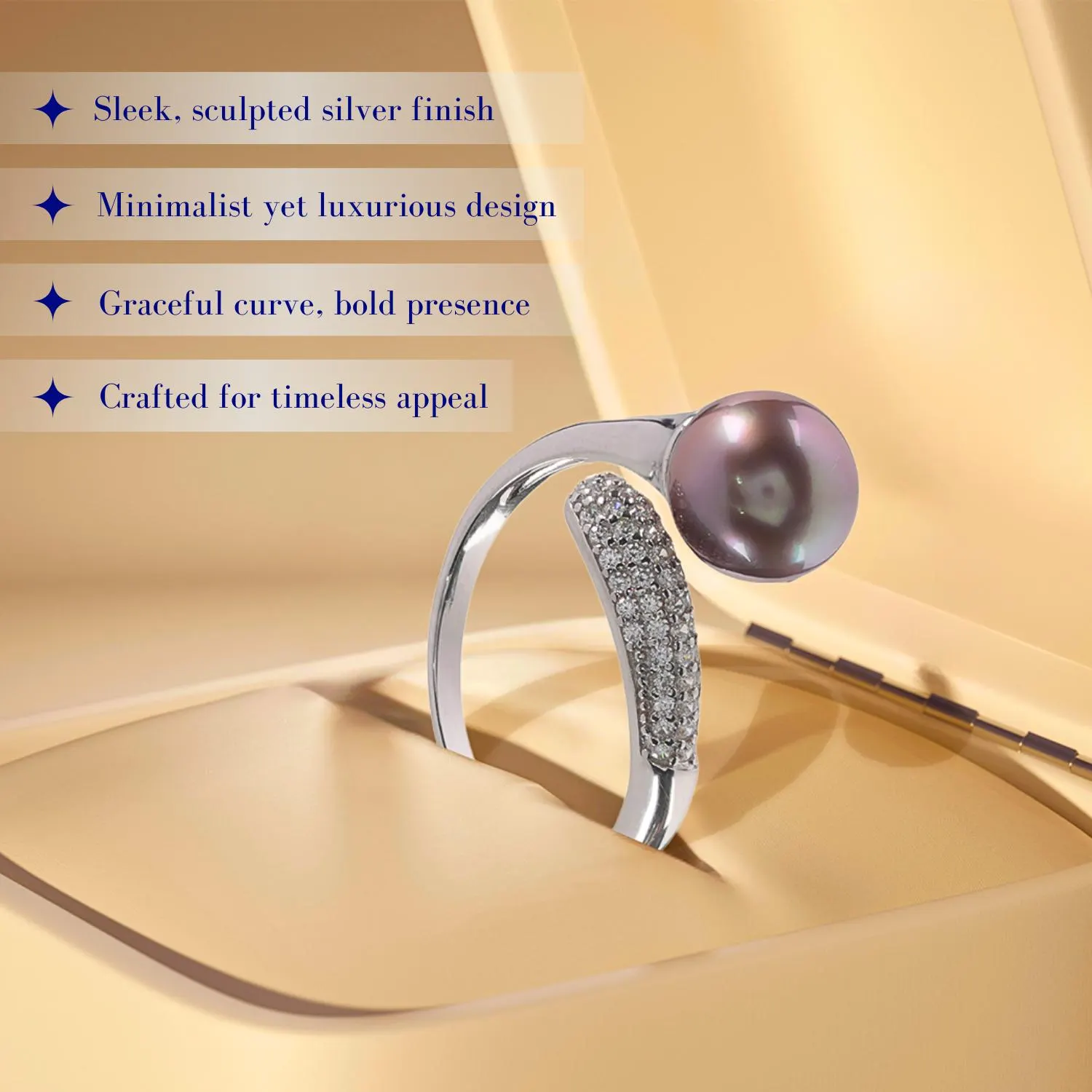 Tahitian Pearl Elegance Ring showcases the rich beauty of a Tahitian pearl set against a refined silver band. Its striking yet minimal style feels luxurious restraint, perfect for sophisticated events, office parties, or adding a unique statement to everyday wear.