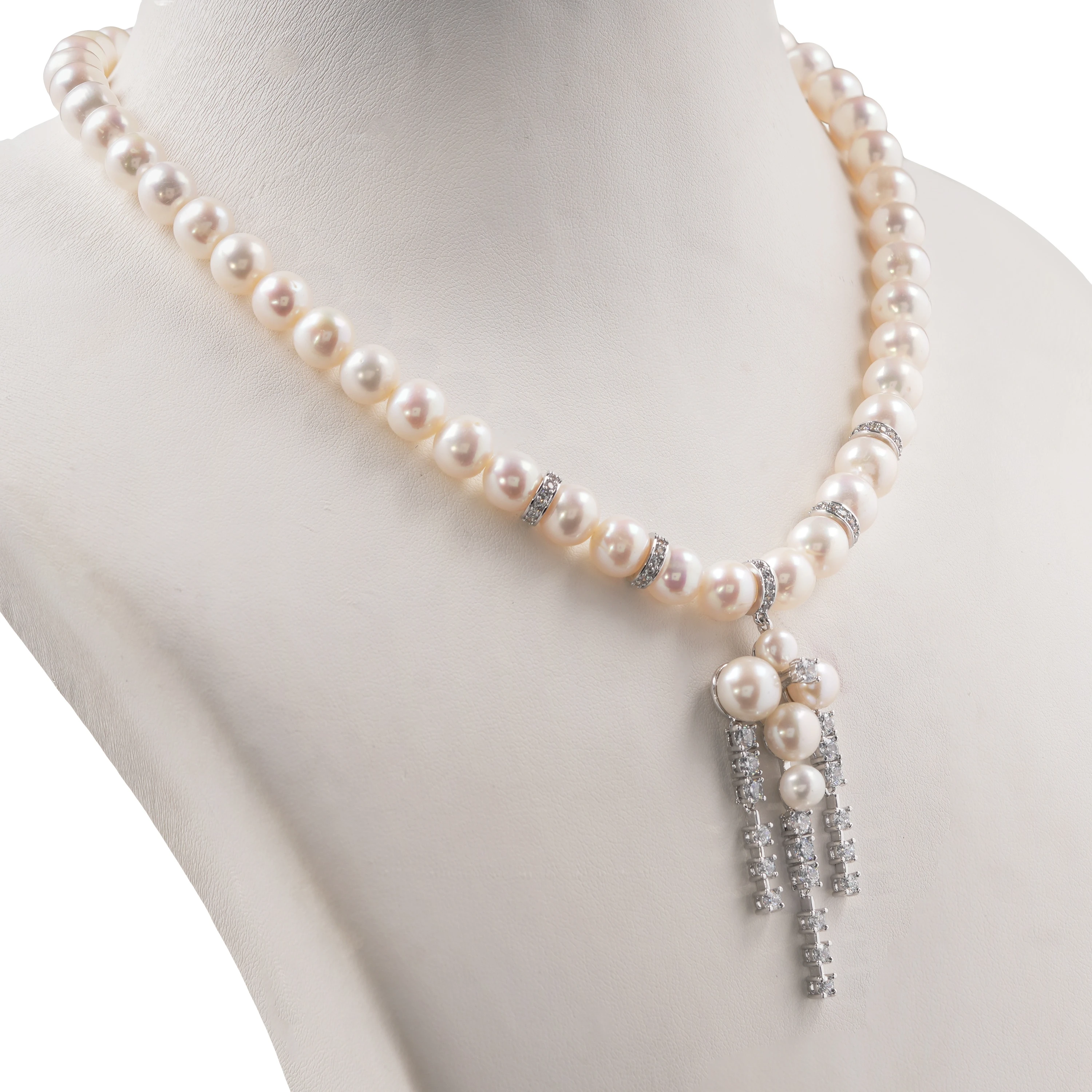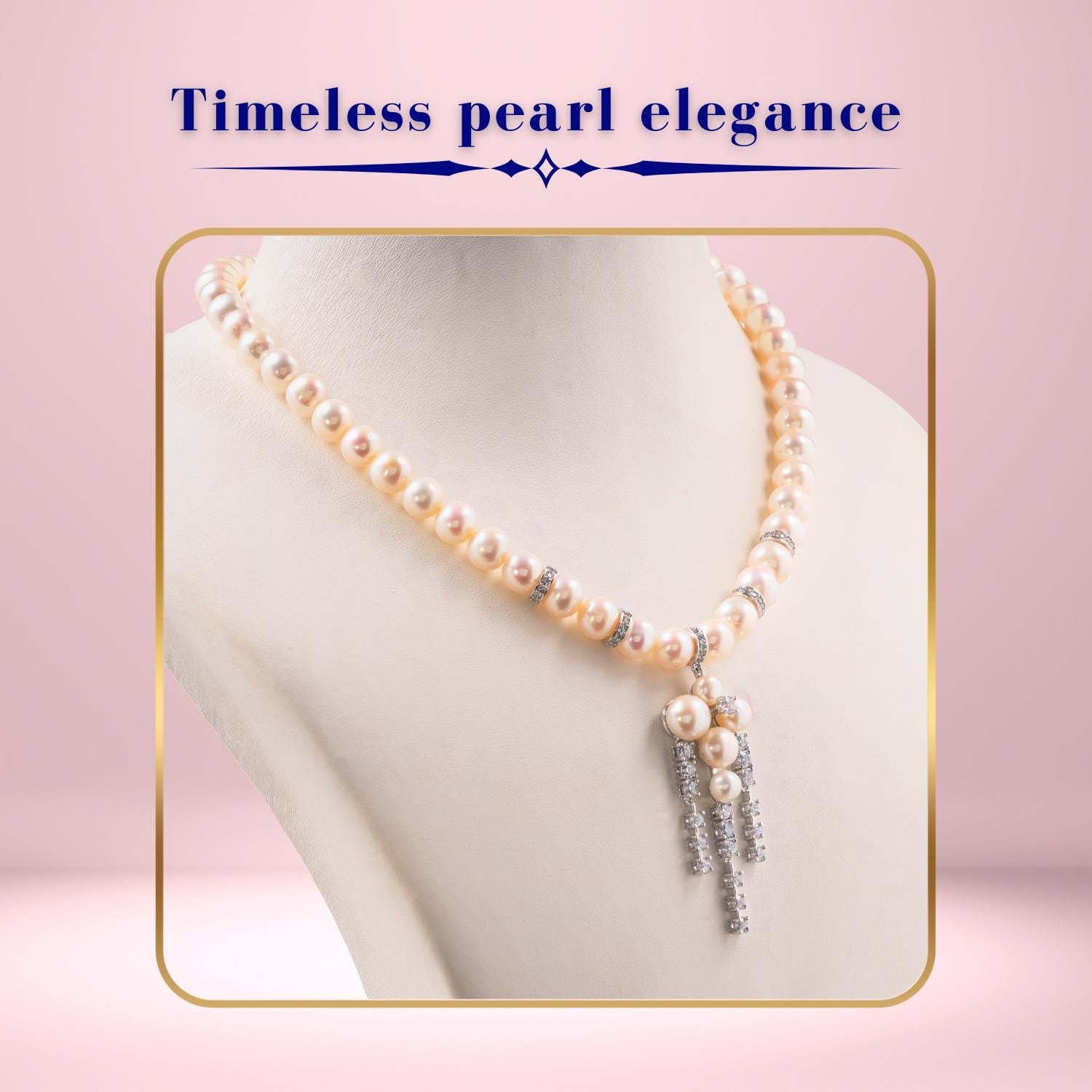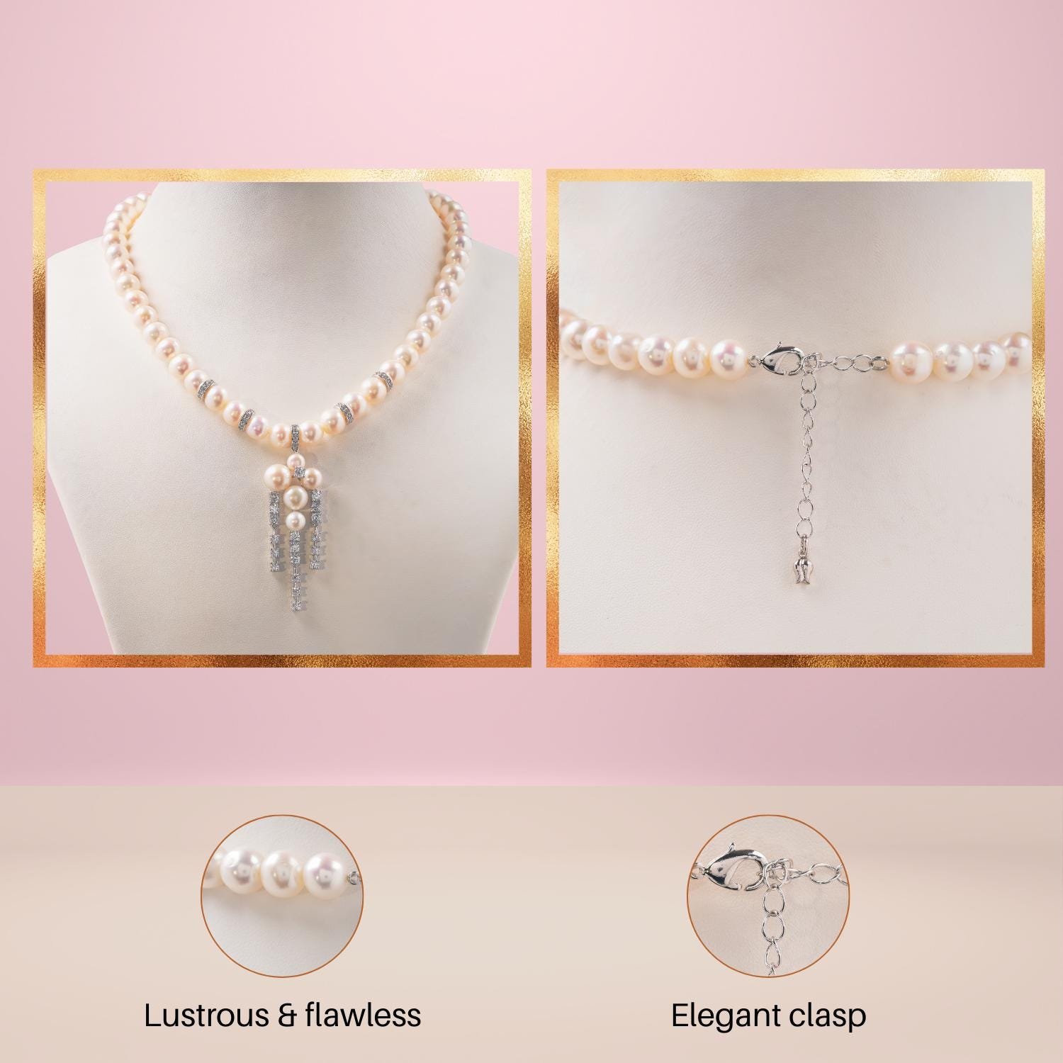 Elegant Freshwater Pearl Necklace with Crystal Accent Beads & Cascading Dangle Pendant, Timeless Bridal, Party And Anniversary Jewellery