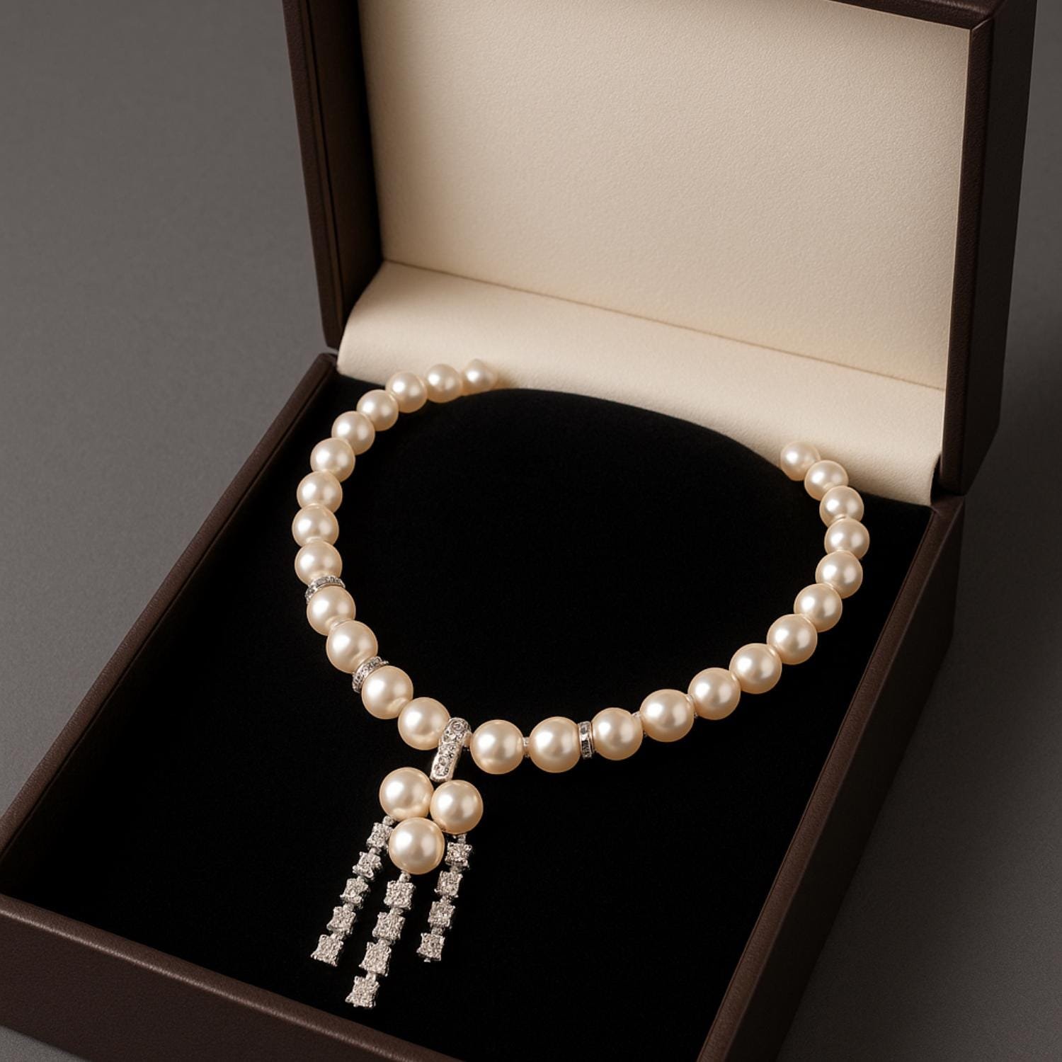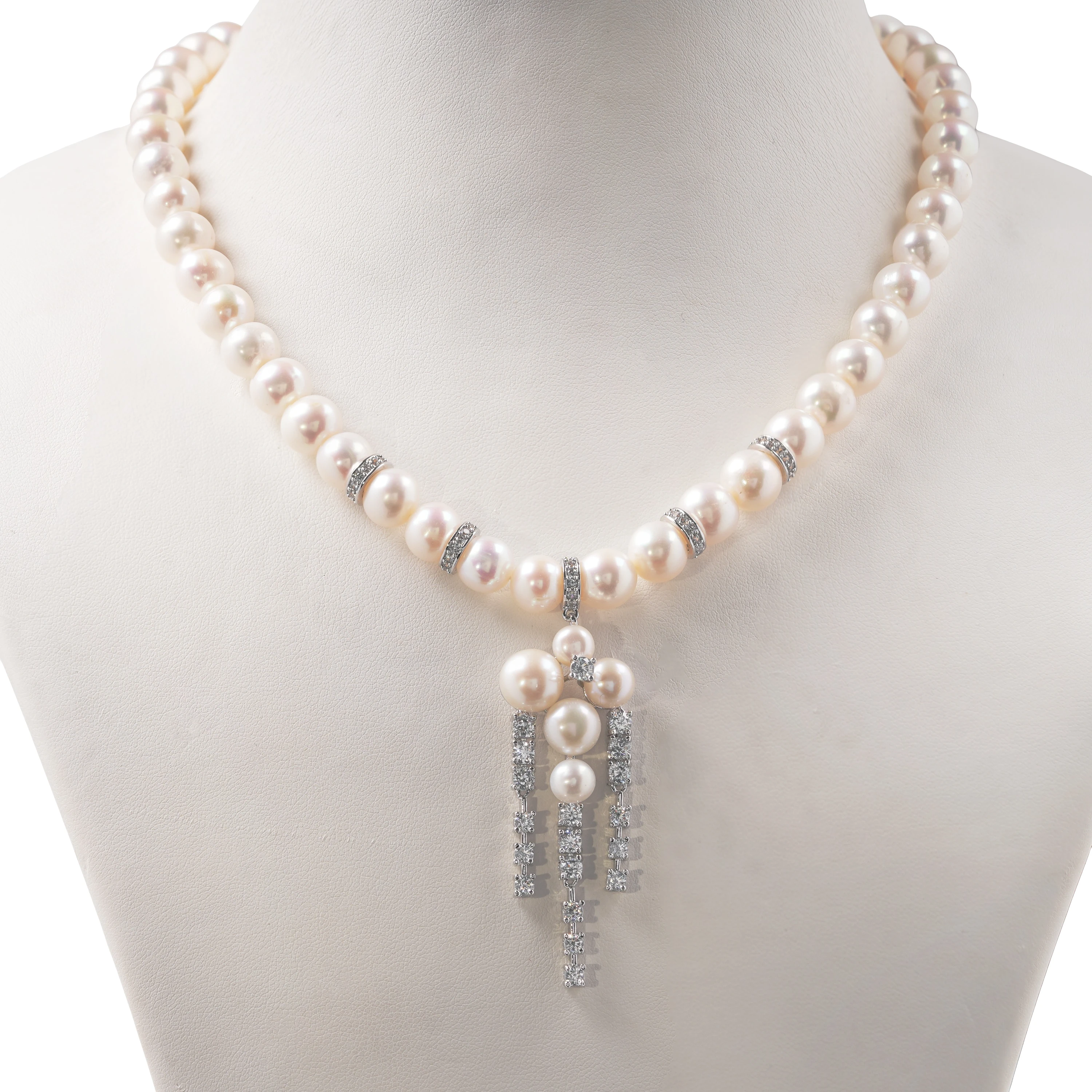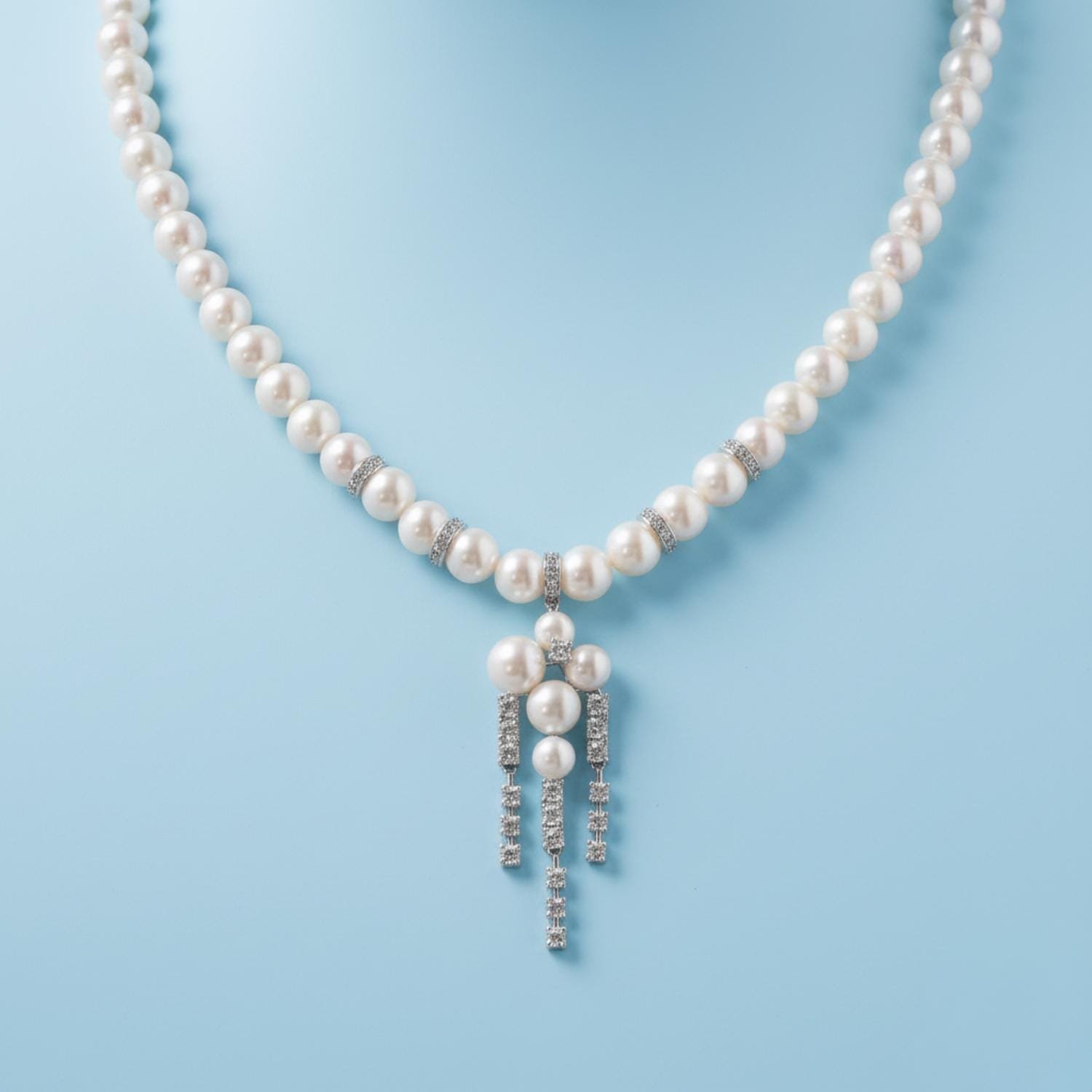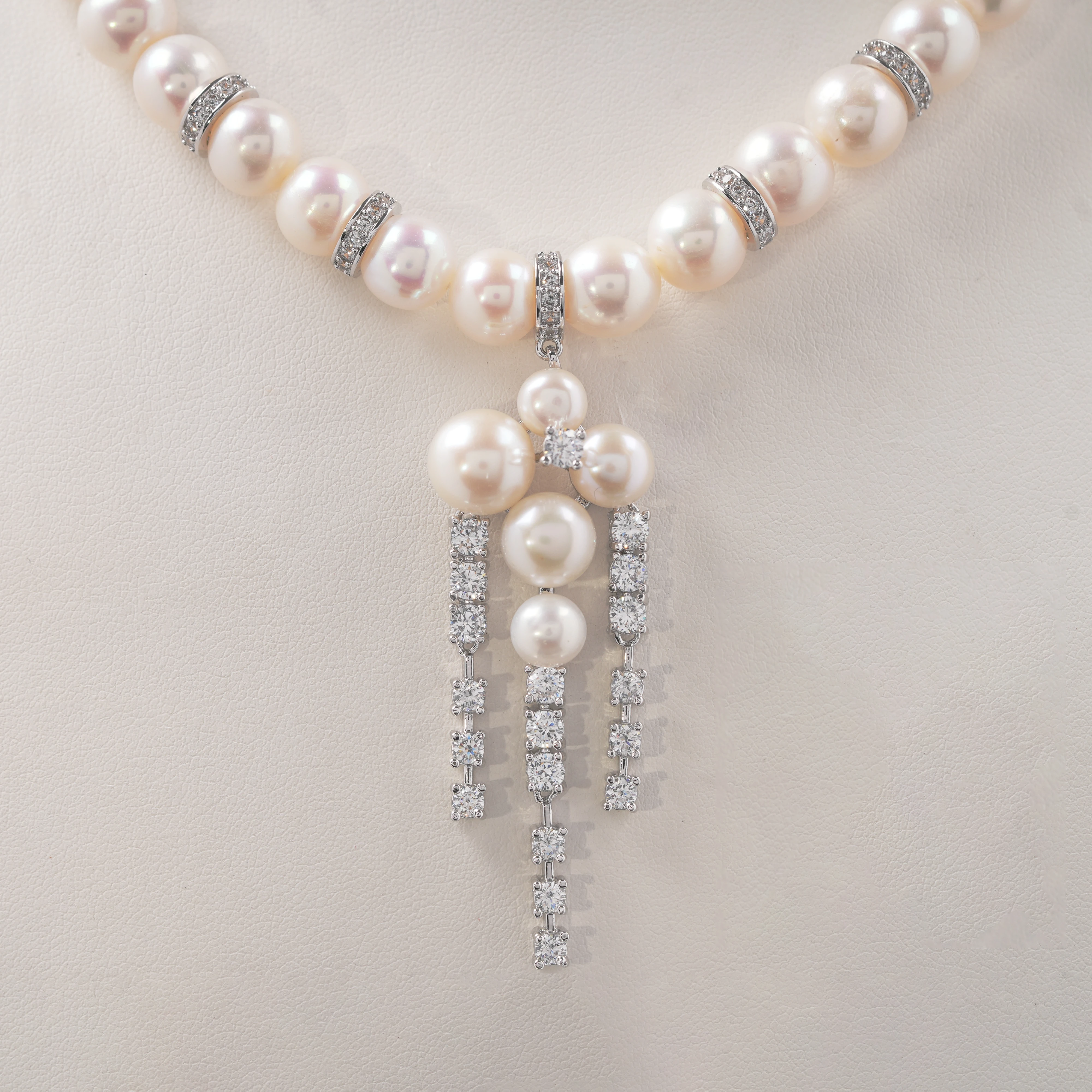 Elegant Freshwater Pearl Necklace with Crystal Accent Beads & Cascading Dangle Pendant, Timeless Bridal, Party And Anniversary Jewellery
