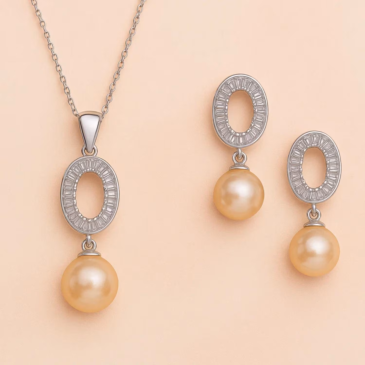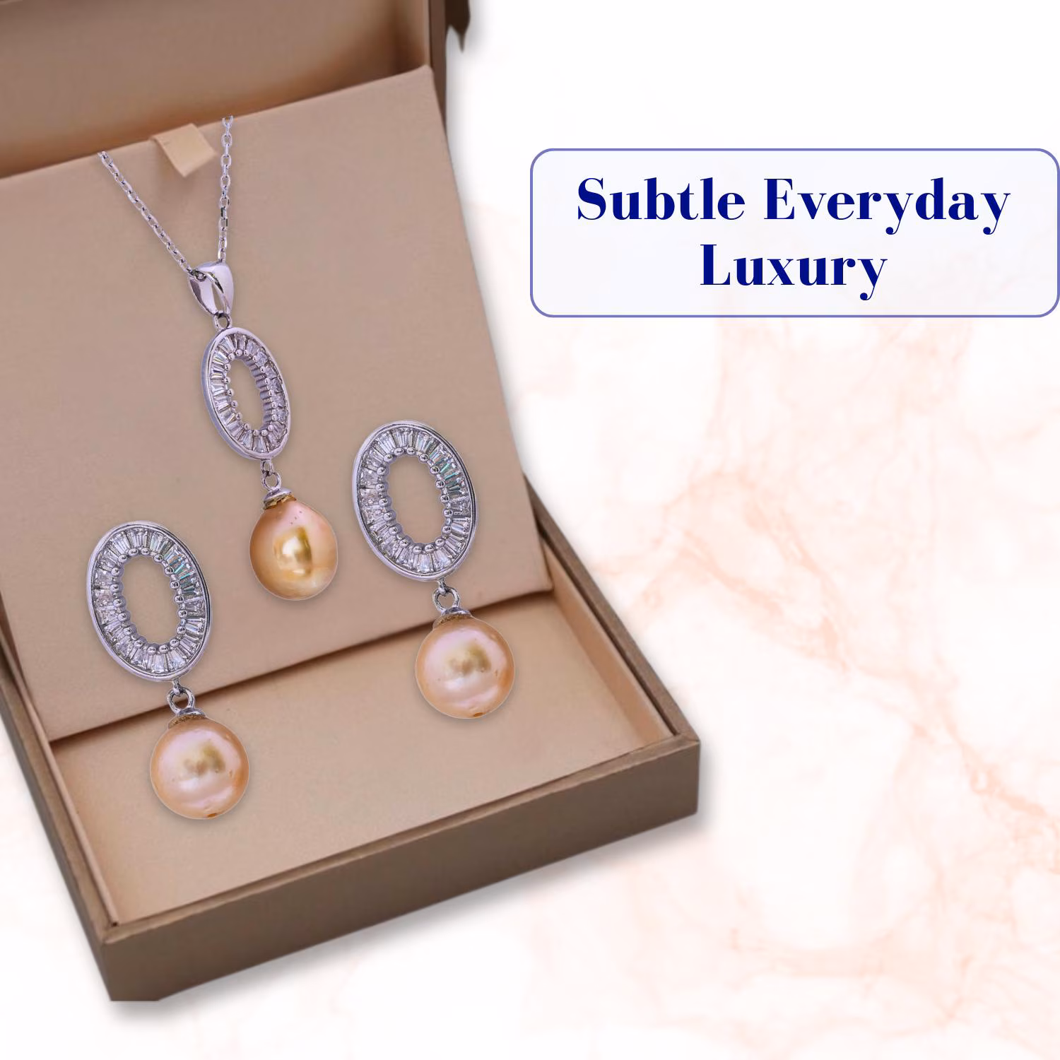 Oval Éclat Ensemble collection presents a pendant and earrings in refined silver with elegance pearl detailing. Understated yet adaptable, this set is perfect for both formal occasions and everyday wear. A piece that combines elegance and luxury for women who appreciate jewellery that works across styles and seasons effortlessly.