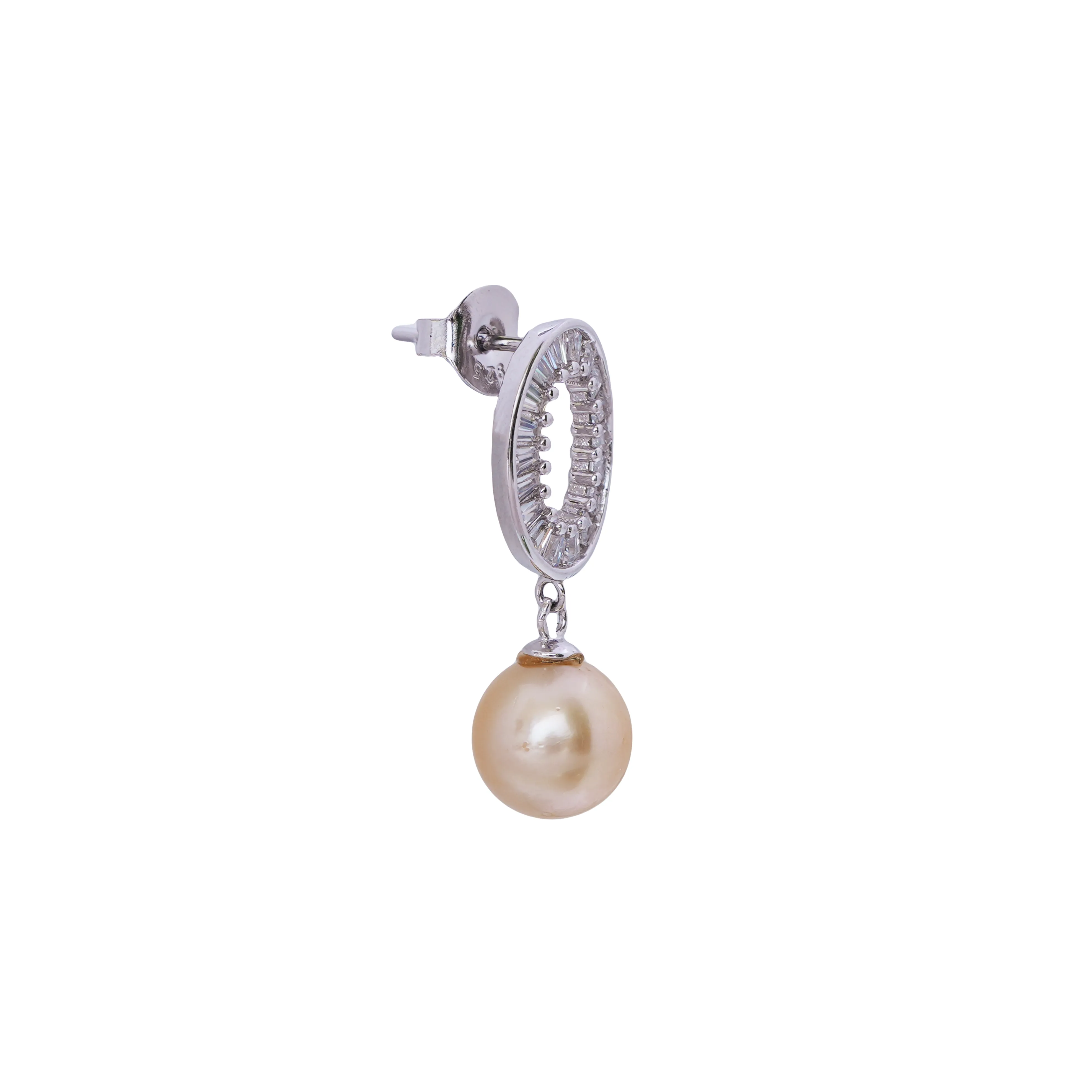Elegant Golden South Sea Pearl Jewellery Set, Sterling Silver Necklace and Dangle Earrings ? Luxury Bridal Jewellery Gift for Her