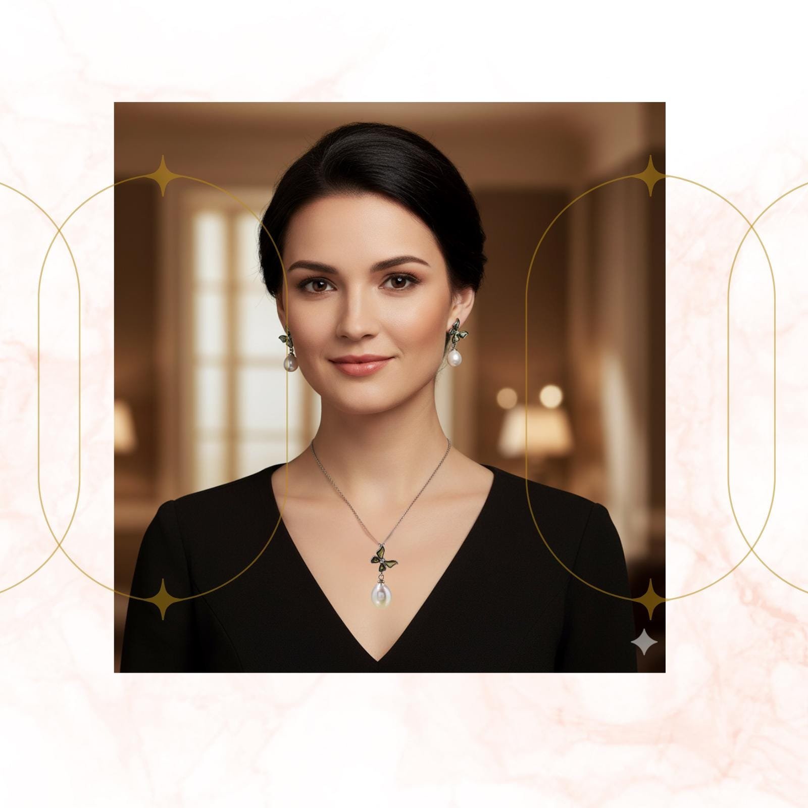 Wings of Mist collection features a pendant and earrings shaped with flowing silver curves and soft pearl accents. Perfect for both daytime elegance and evening sophictication, it blend with an airy elegance, making it a versatile choice for women who appreciate refined designs that feel light yet luxuriously graceful.