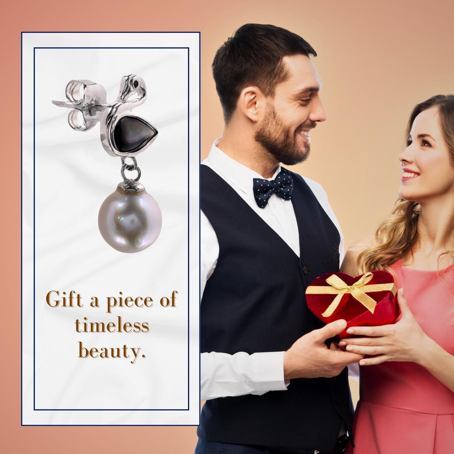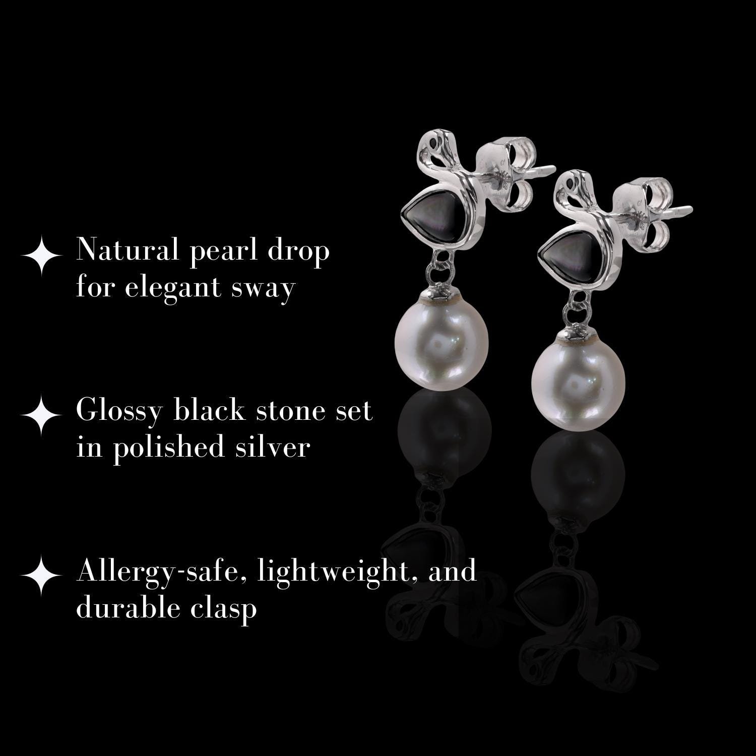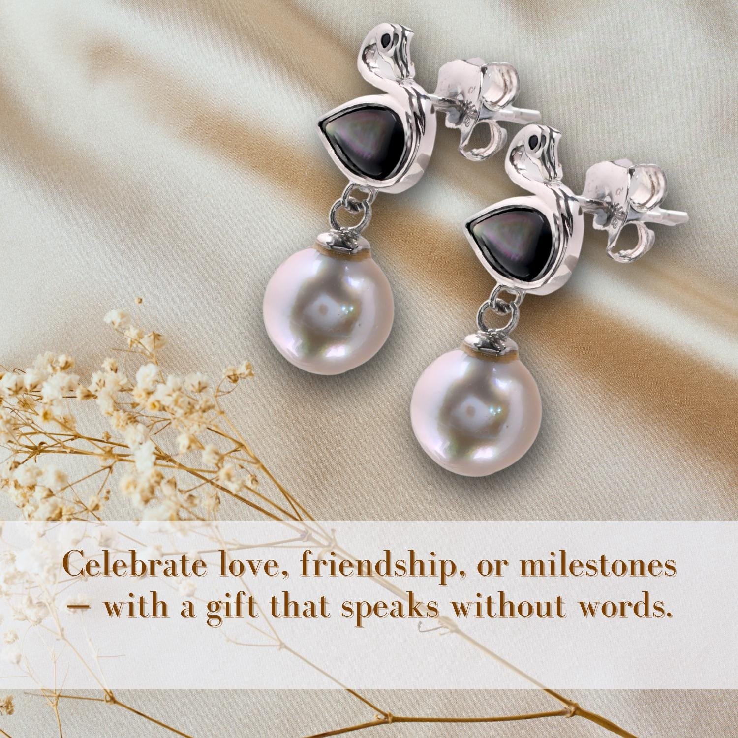 Elegant Swan Pearl Drop Earrings – Sterling Silver Bird Design with Black Mother of Pearl & White Pearl Dangle Jewelry for Women