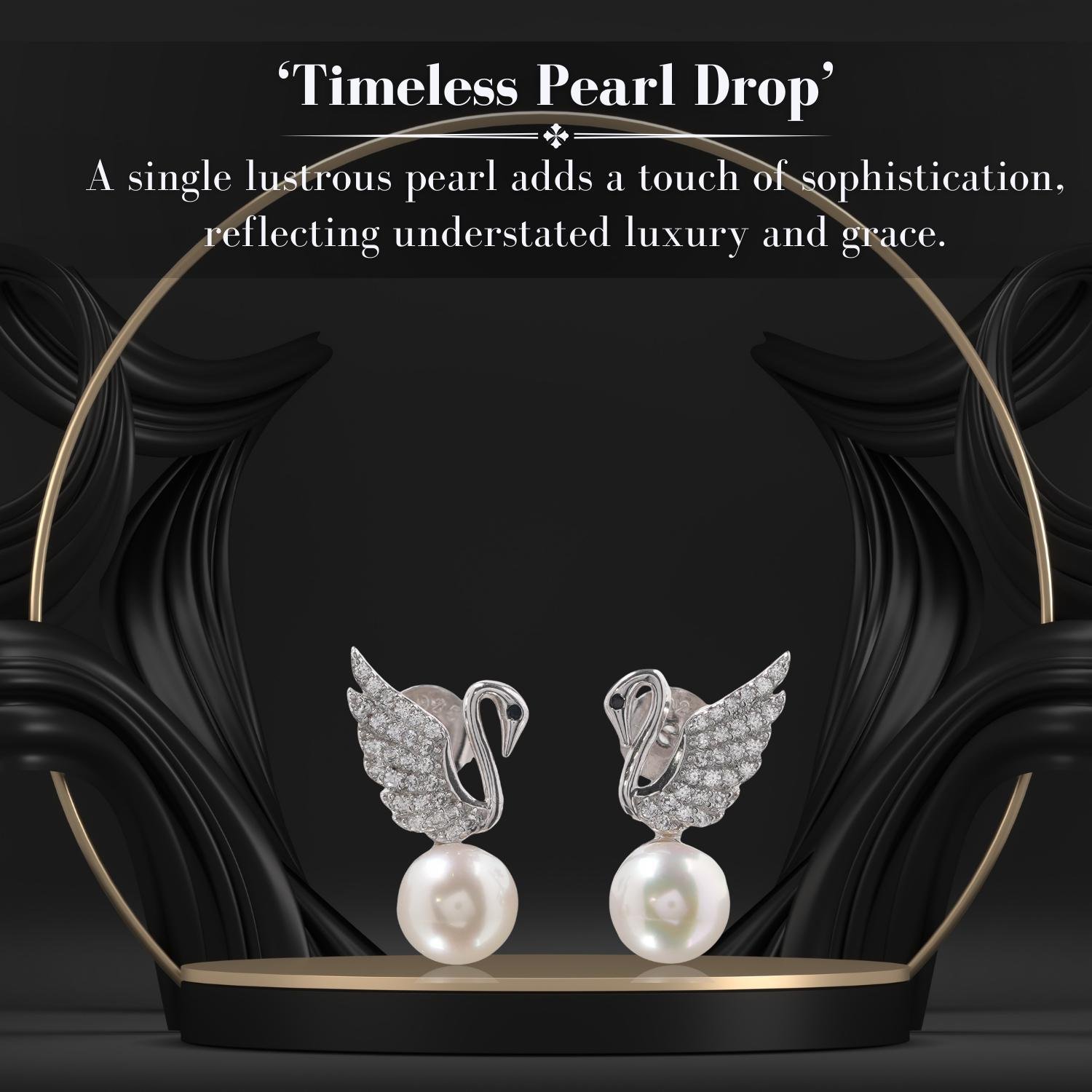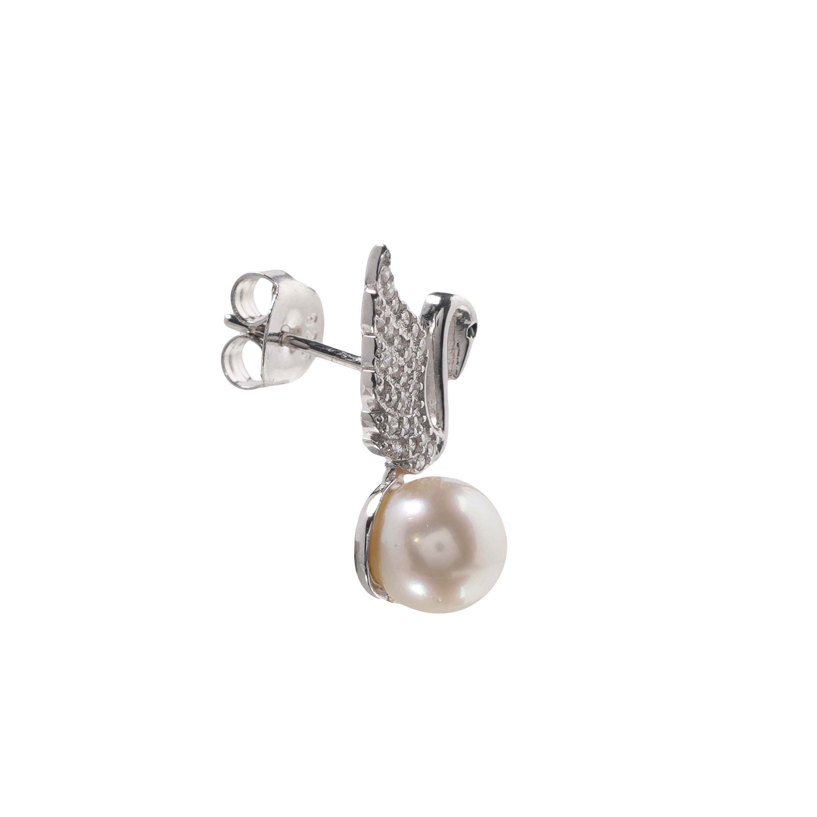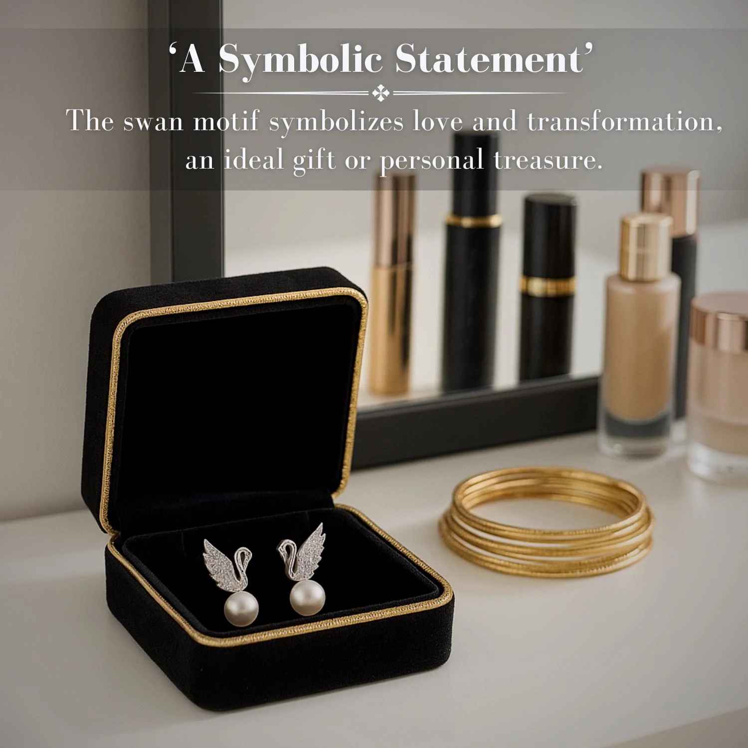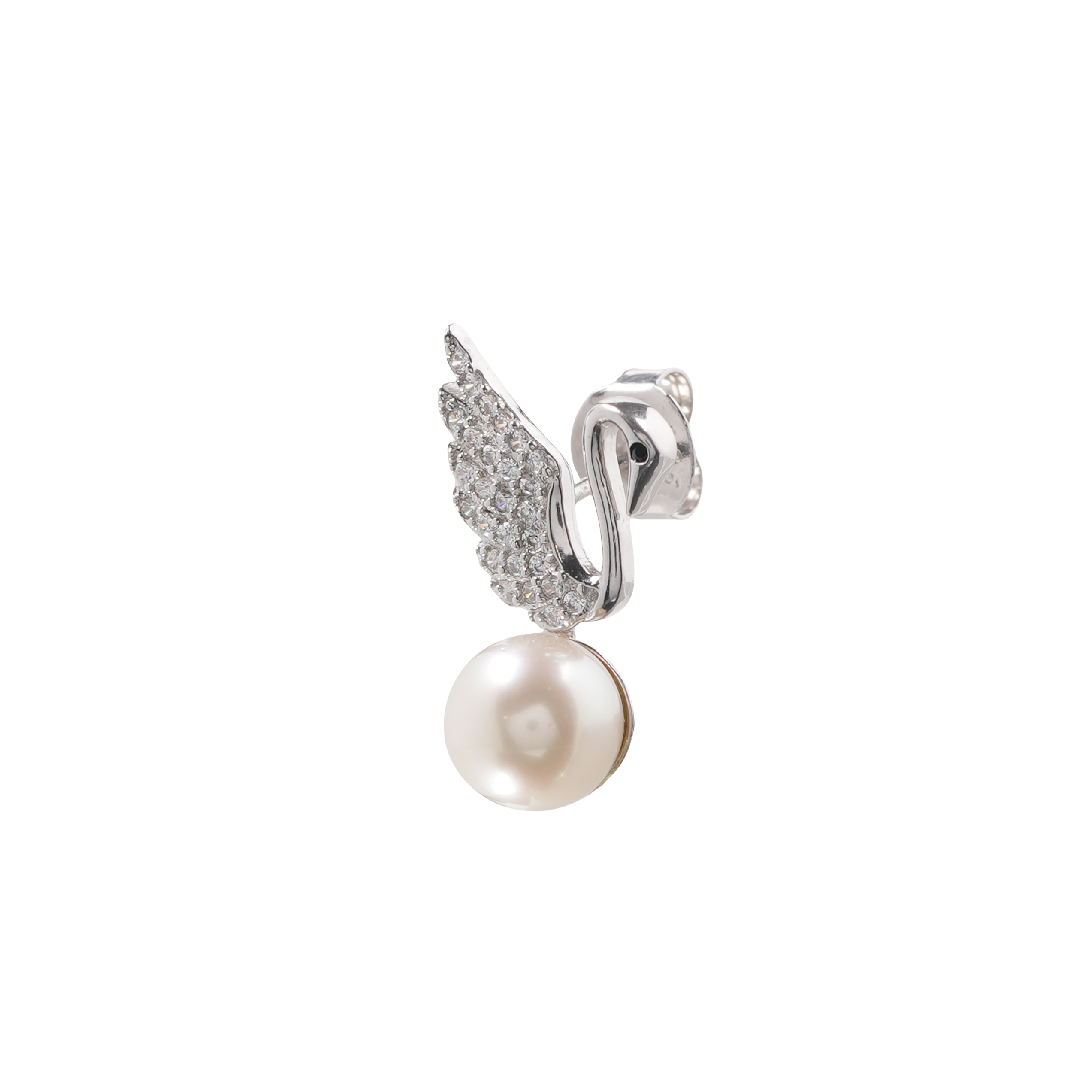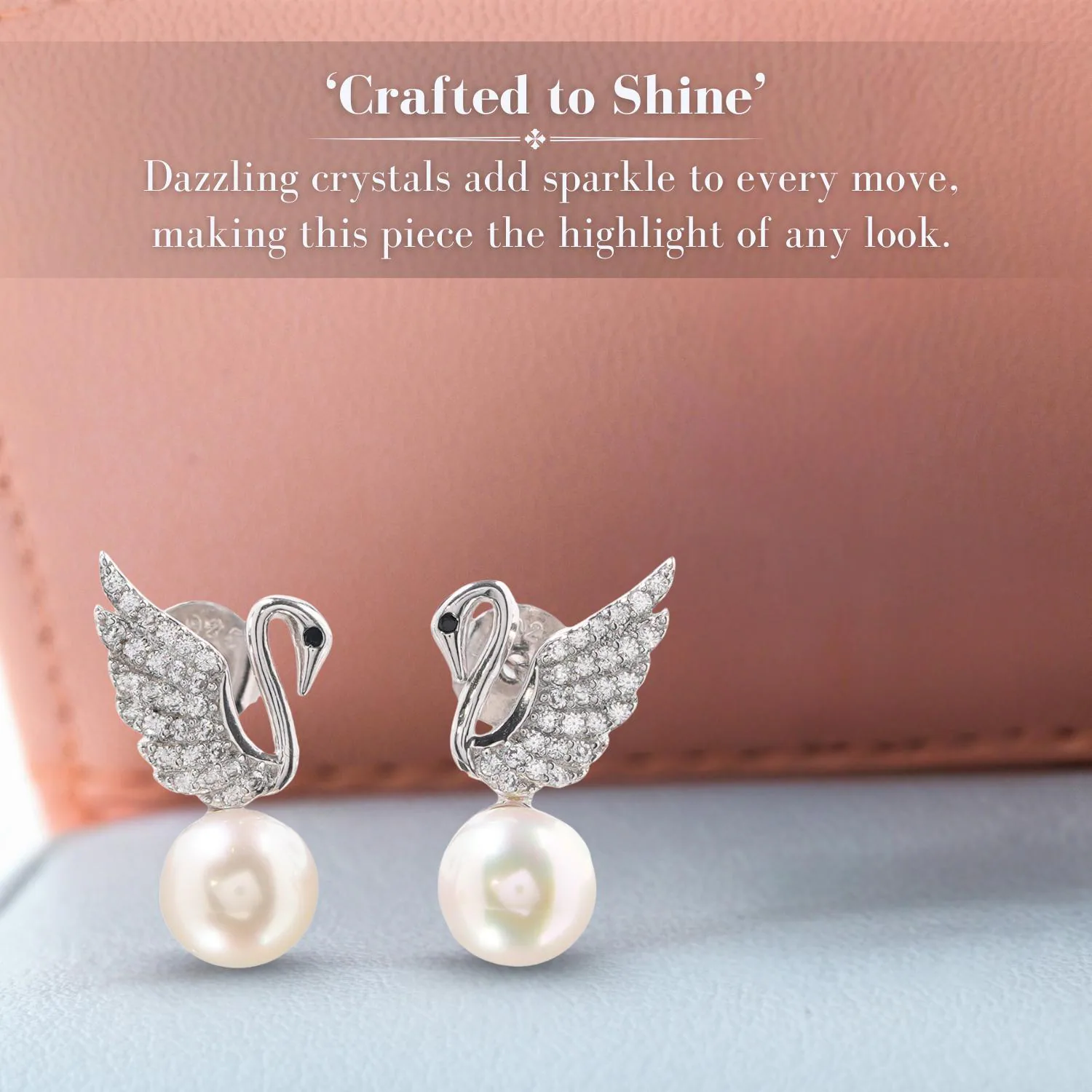 Elegant Swan Pearl Stud Earrings, Sterling Silver Swan Wing Earrings with Crystals & Freshwater Pearls, Perfect Gift for Her