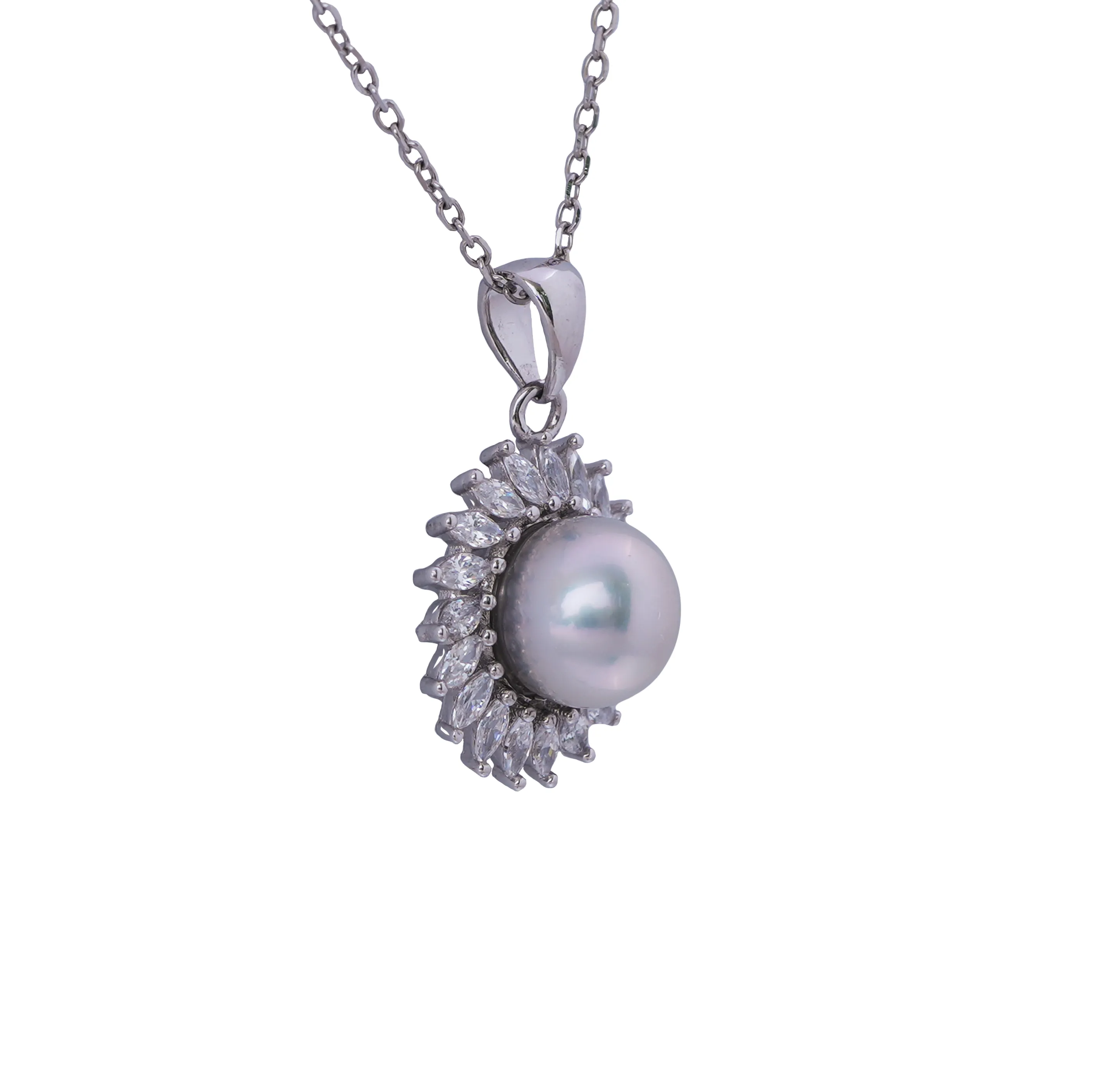 Black Pearl Jewellery Set ? Sterling Silver Necklace, Earrings & Ring with CZ Halo, Elegant Bridal, Wedding And Anniversary Gift