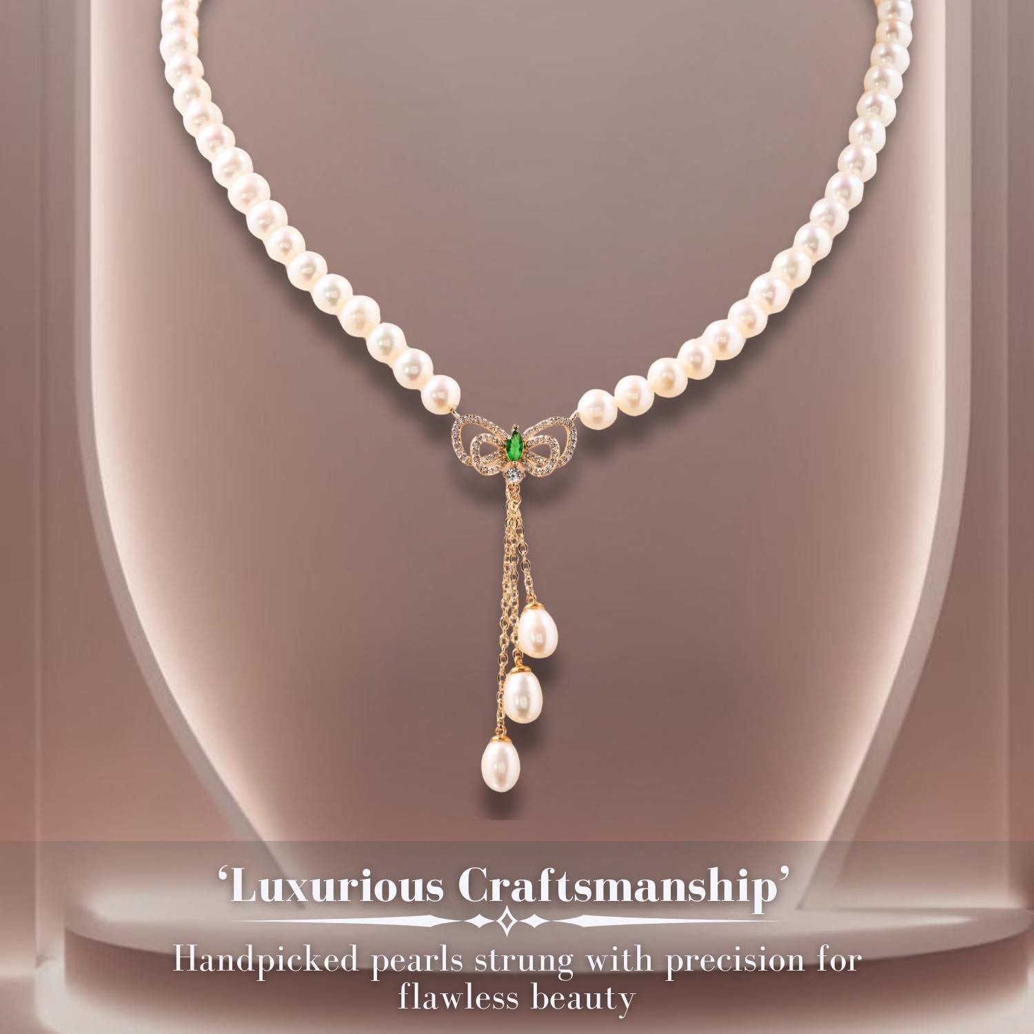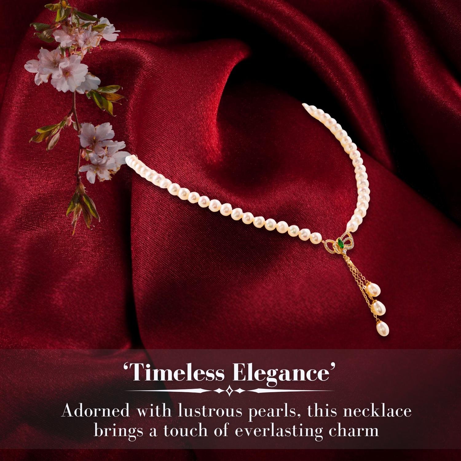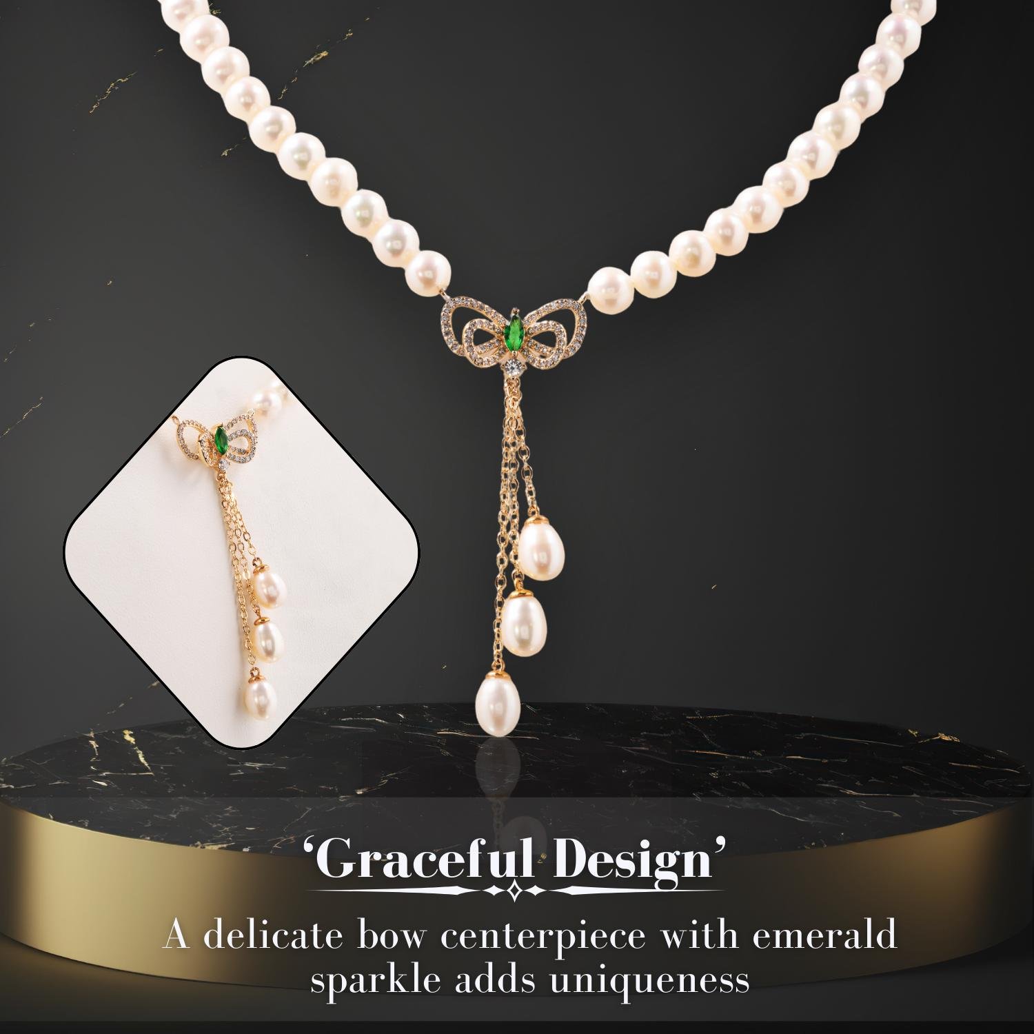 Freshwater Pearl Choker with Elegant Bow Charm & Dangling Pearl Drops, Handmade Bridal Necklace, Timeless Wedding Jewellery Gift