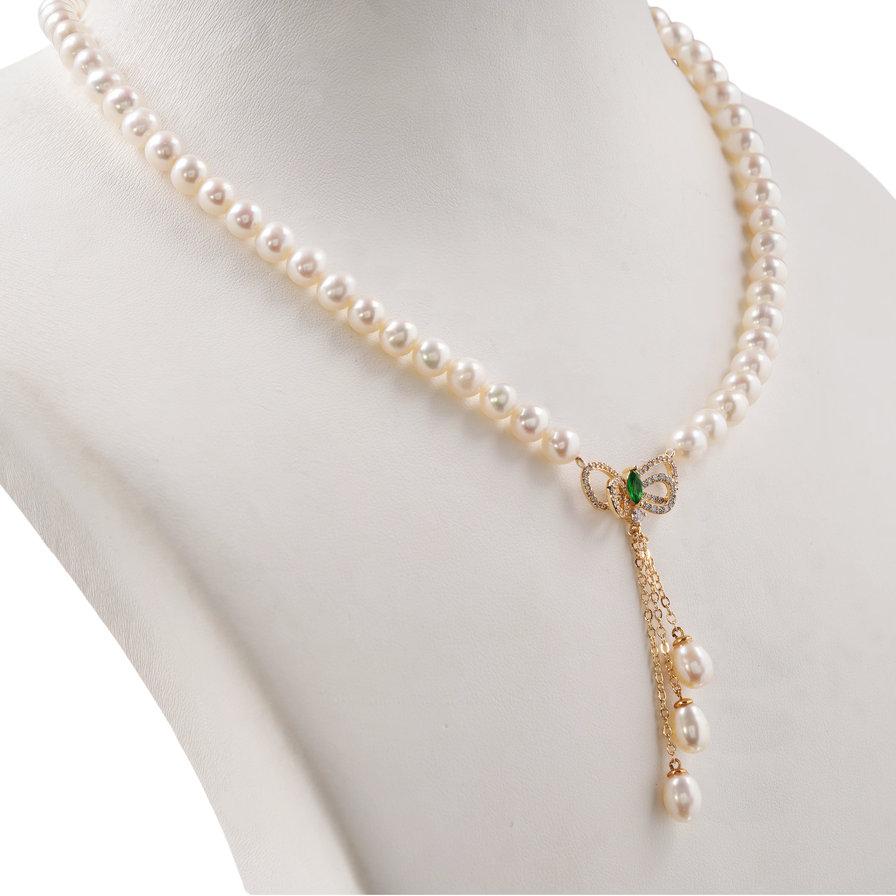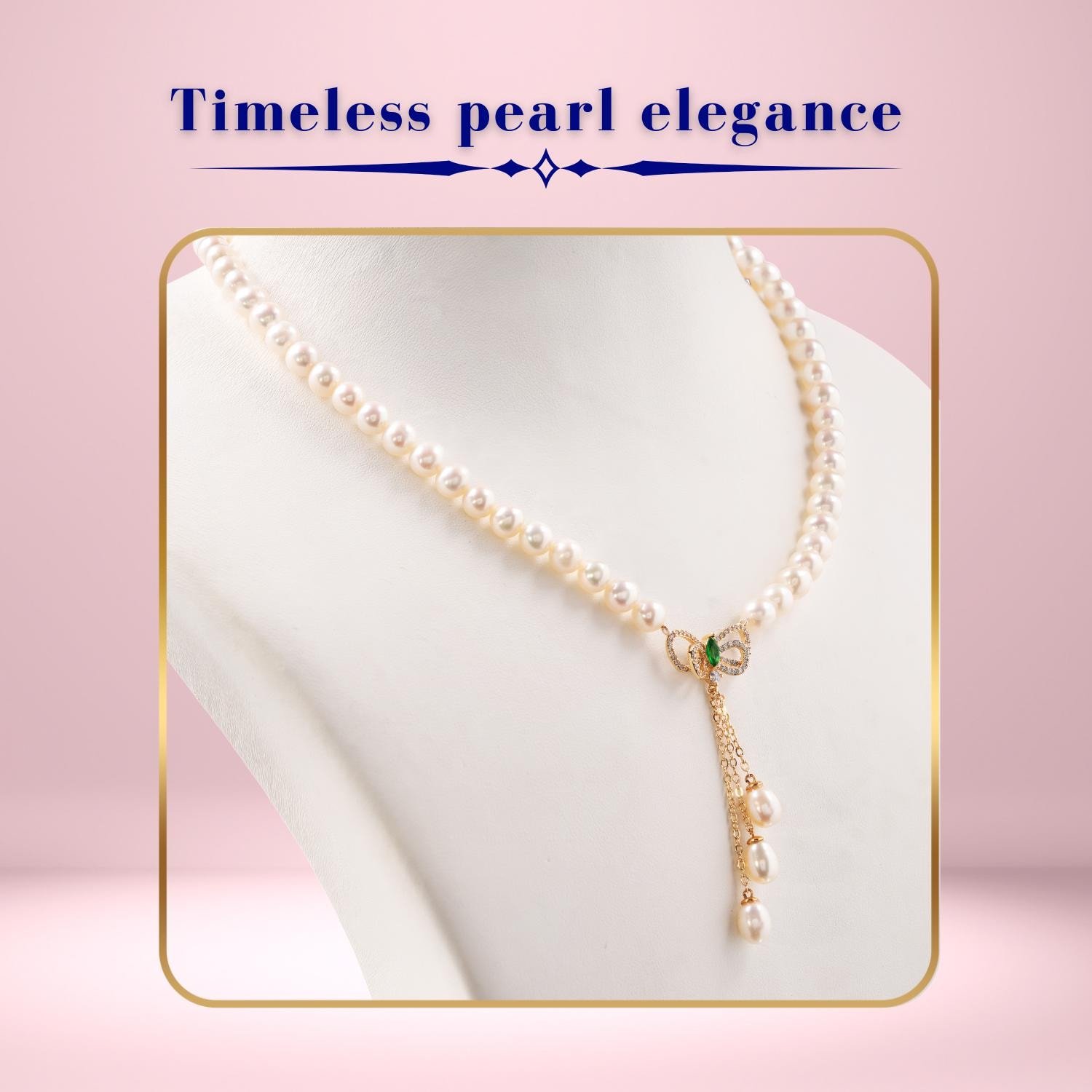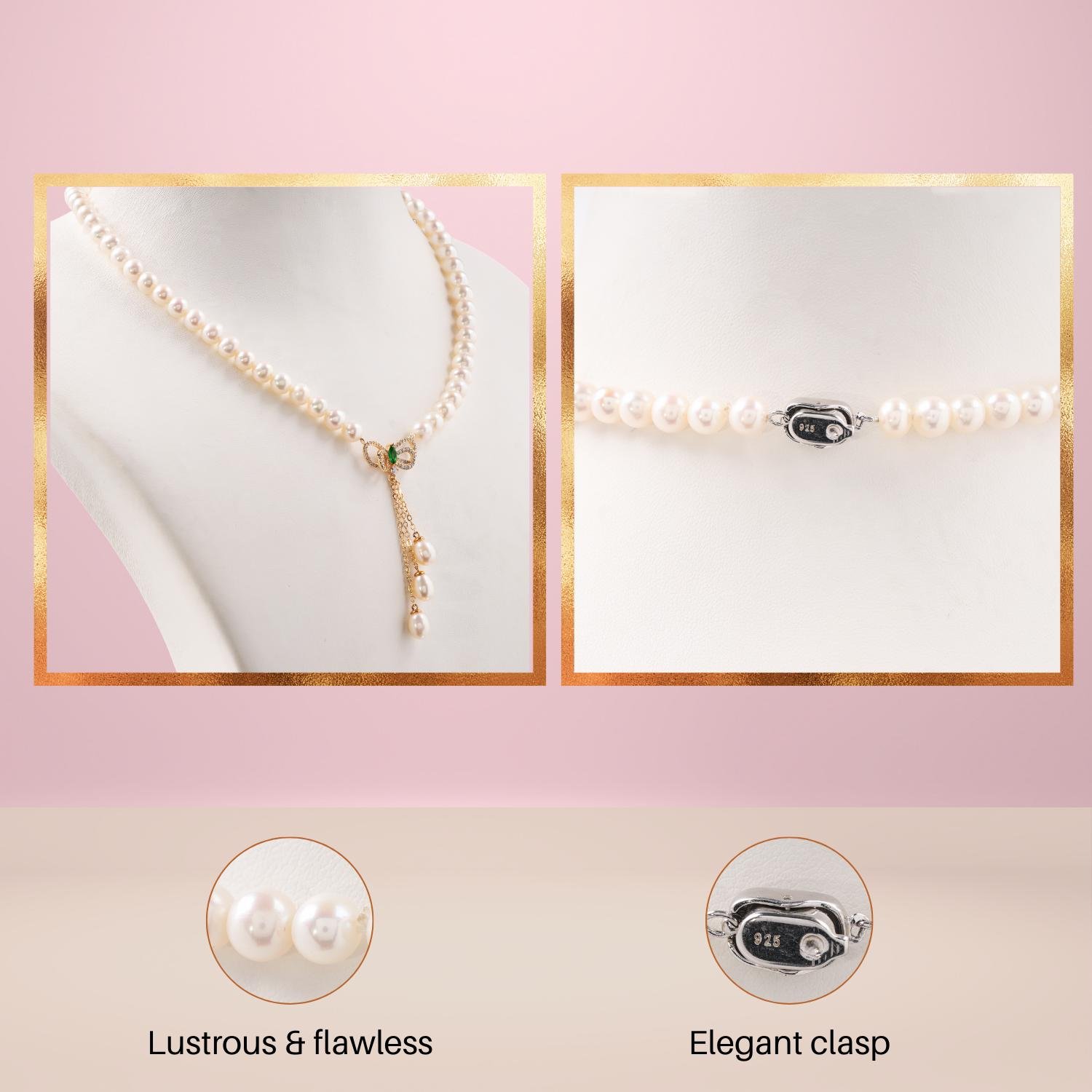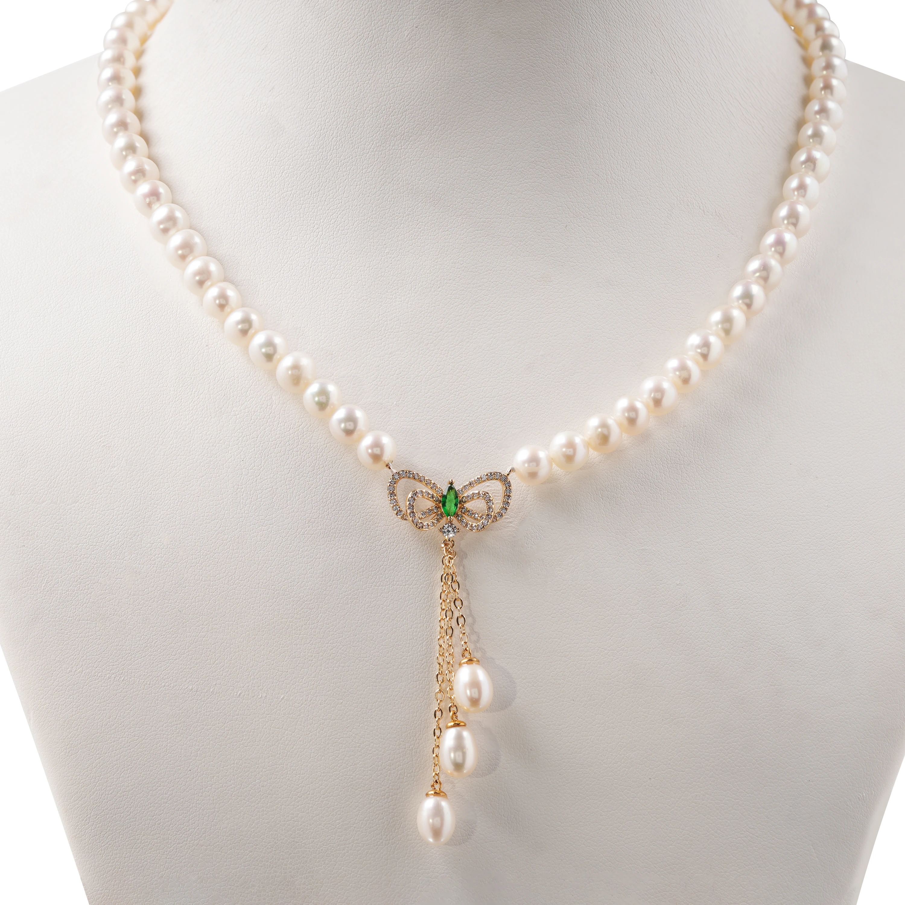 Freshwater Pearl Choker with Elegant Bow Charm & Dangling Pearl Drops, Handmade Bridal Necklace, Timeless Wedding Jewellery Gift
