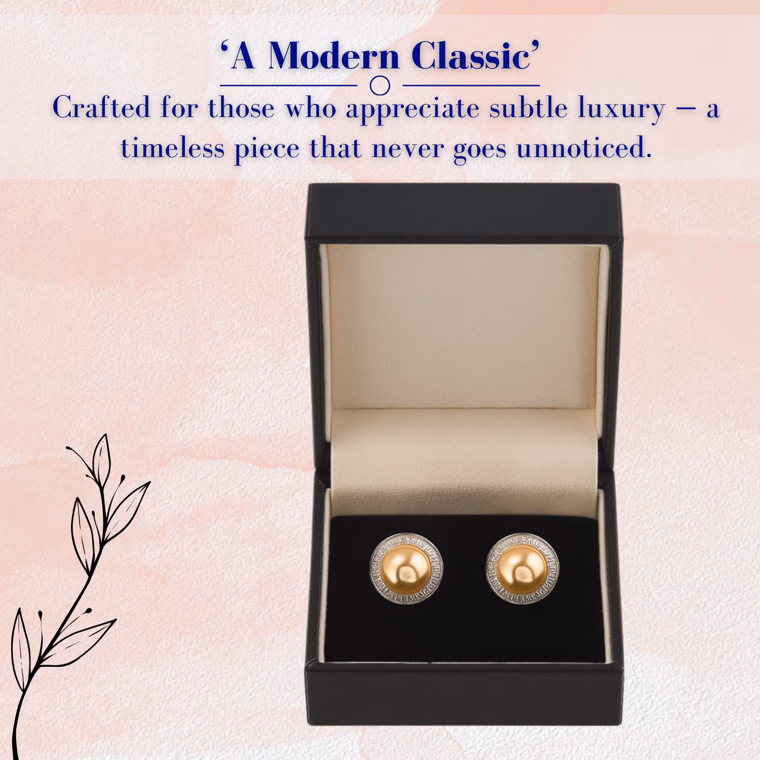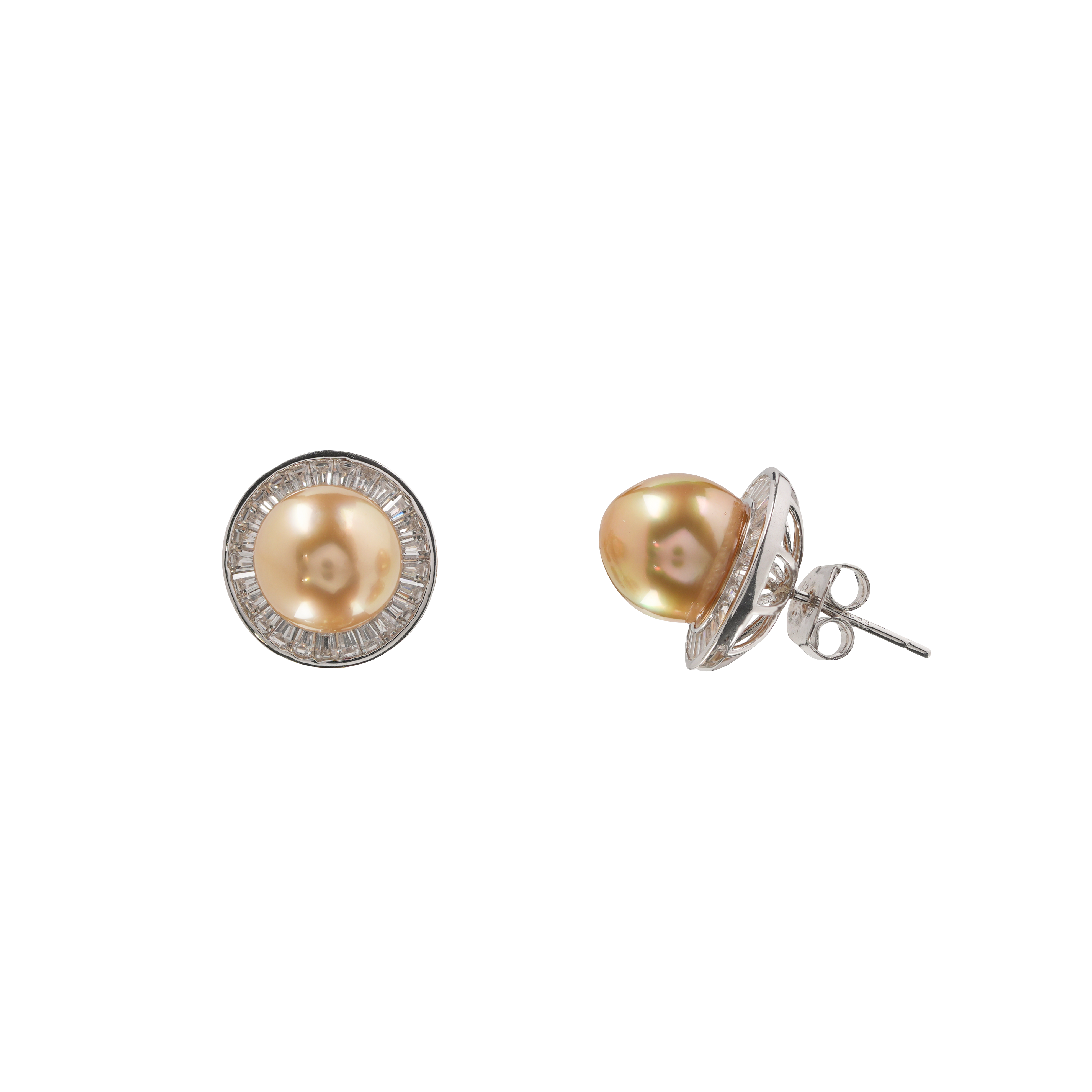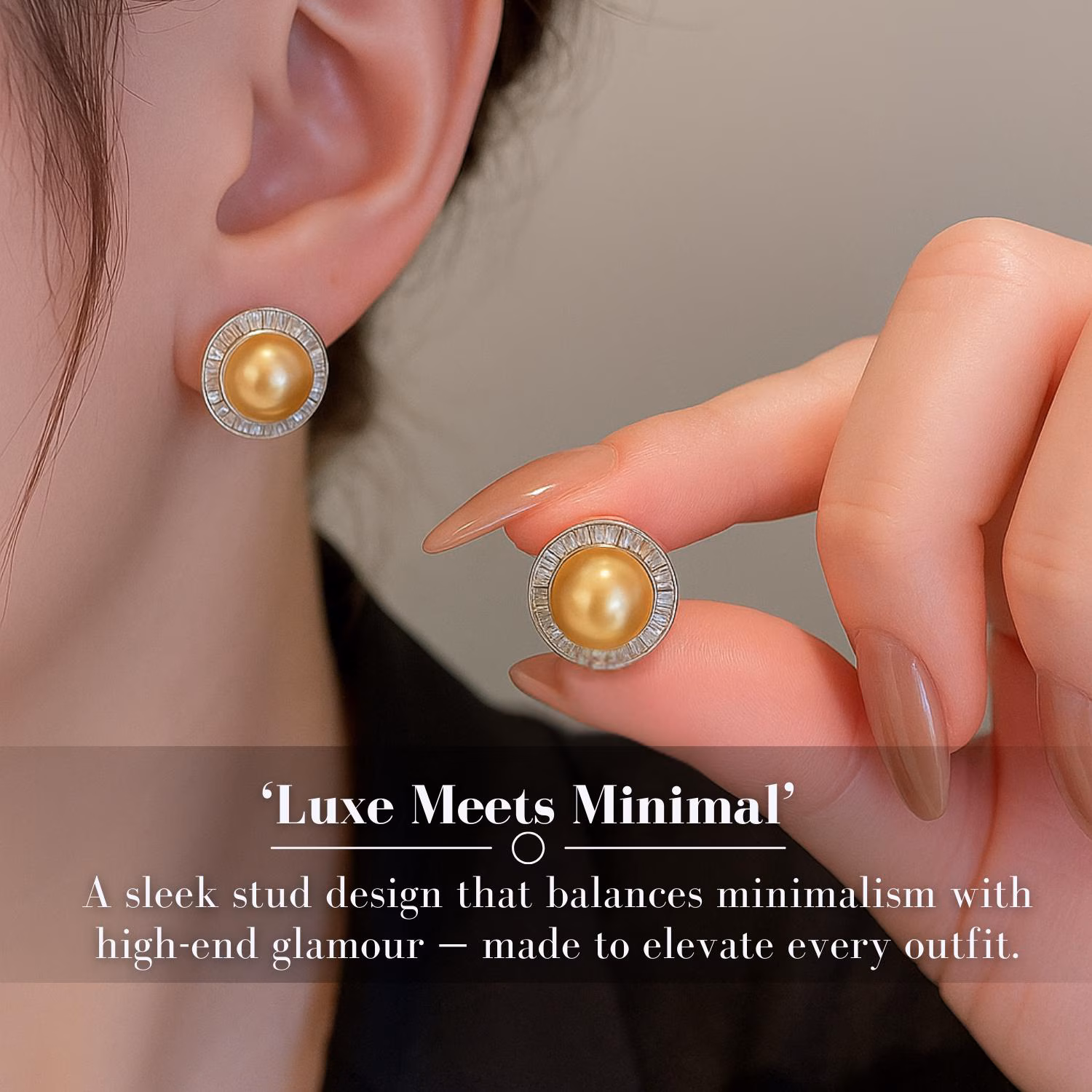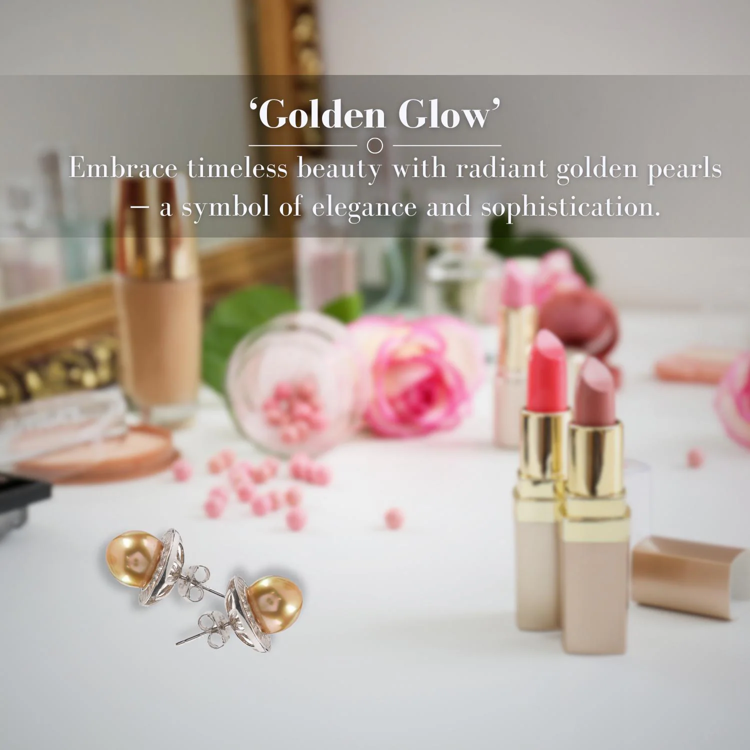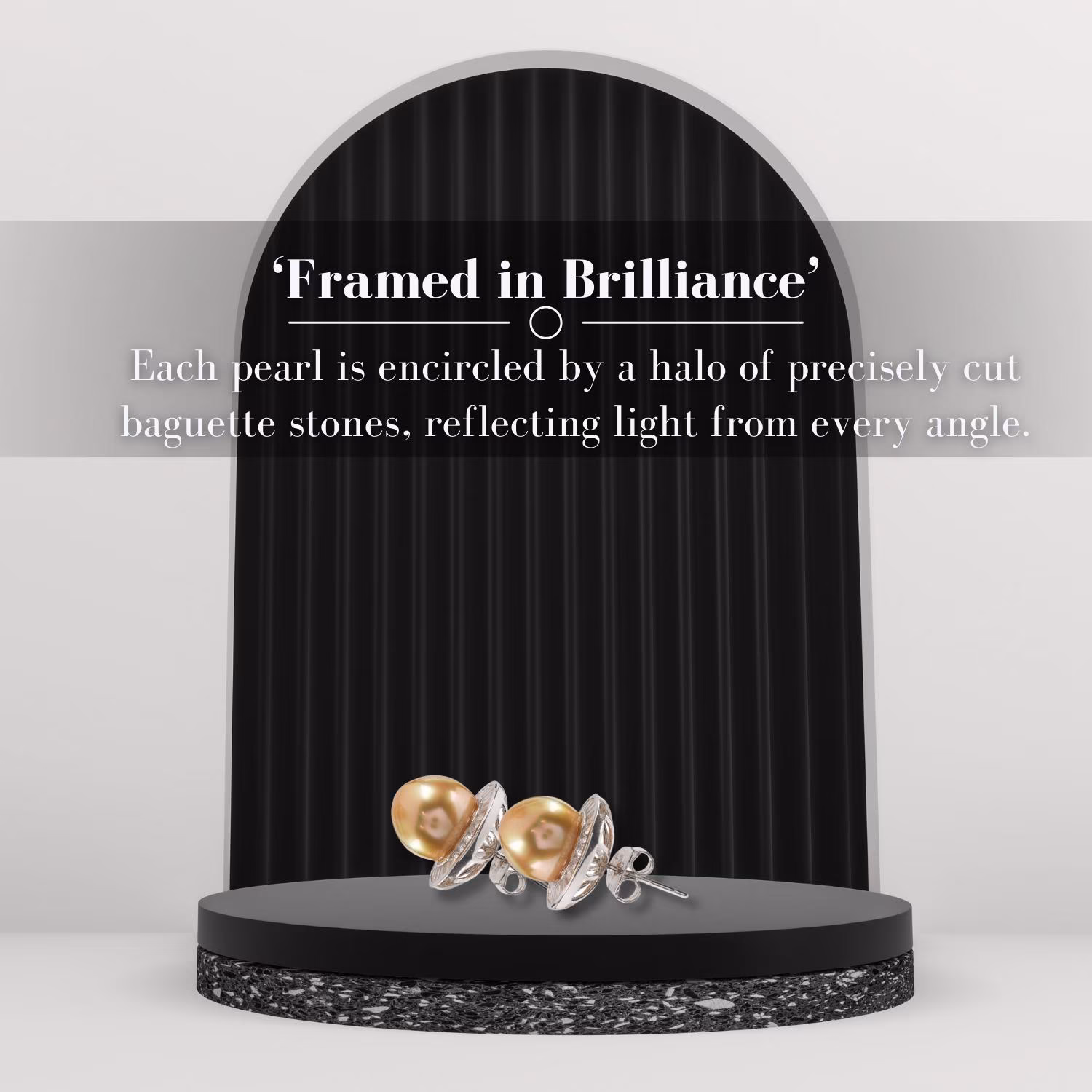Golden South Sea Pearl Stud Earrings, Sterling Silver & Diamond Halo Design, Elegant Classic Pearl Jewelry for Women