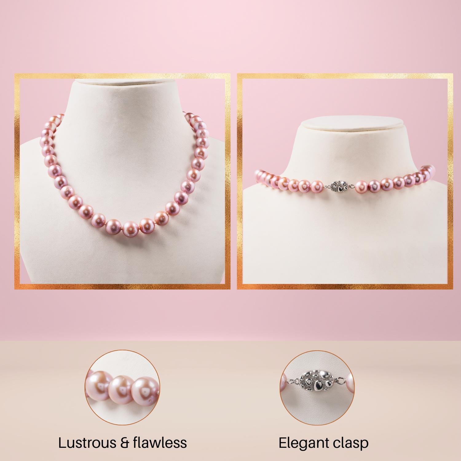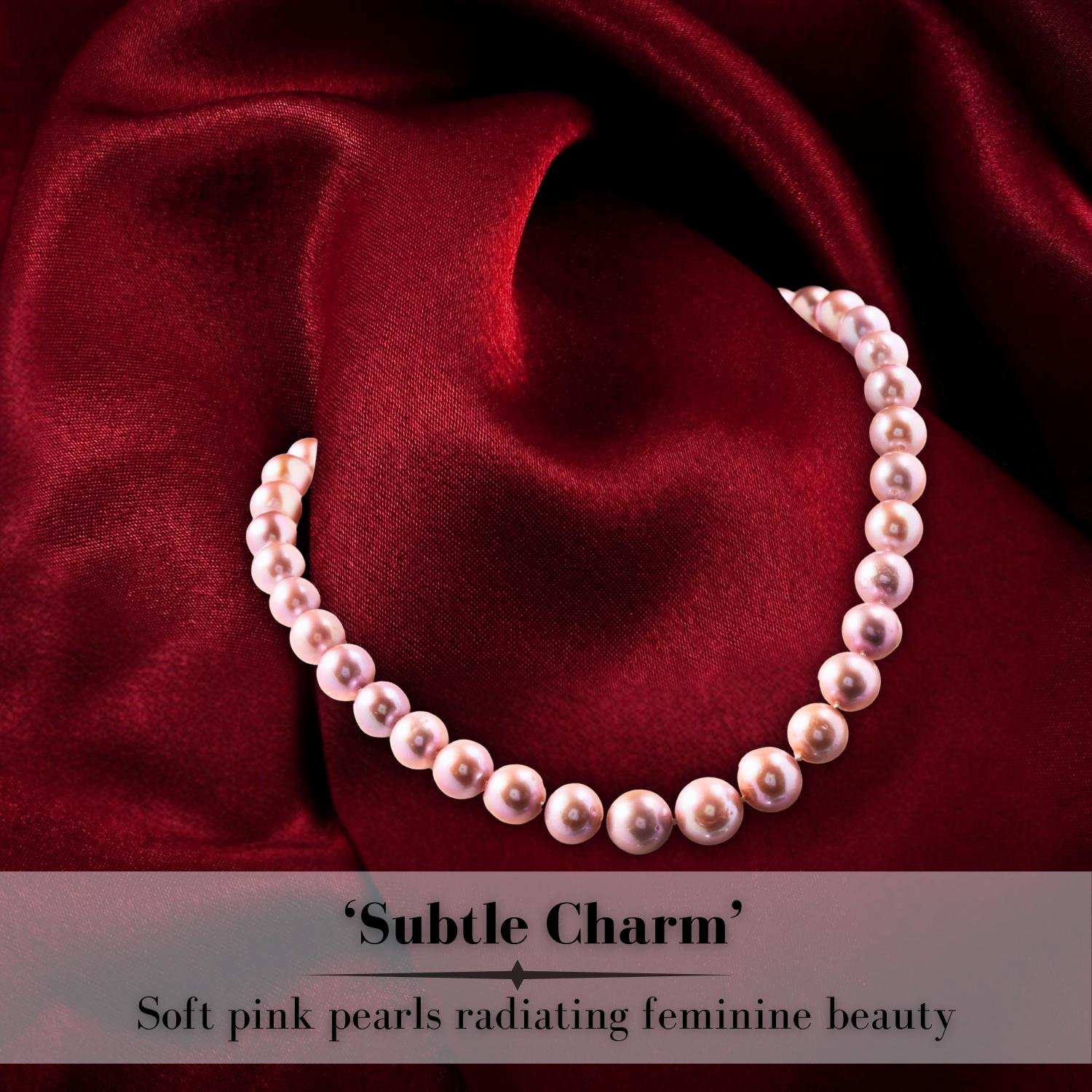 Pink Pearl Necklace, Classic Single Strand Pearl Choker, Handmade Bridal Jewellery, Elegant Gift for Women