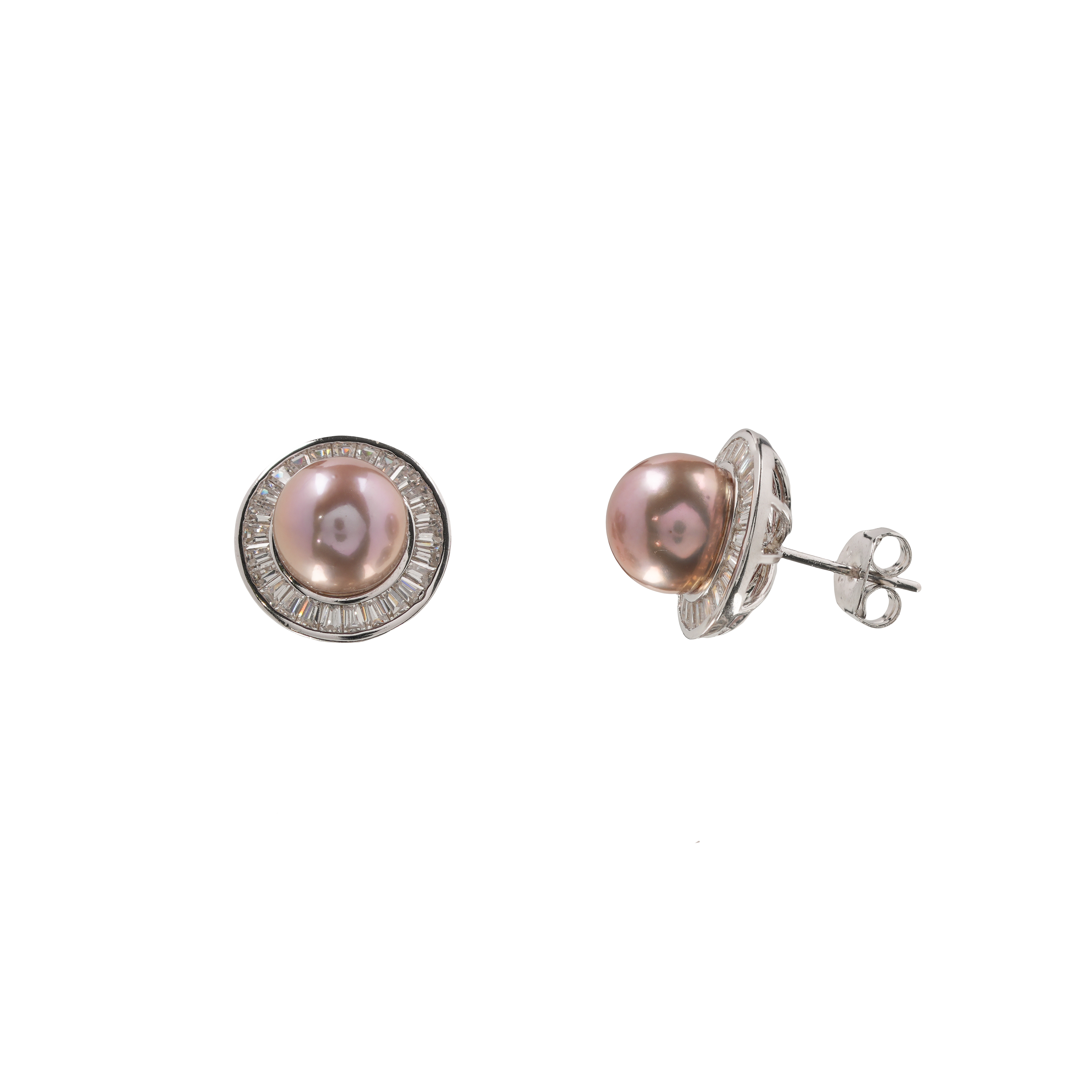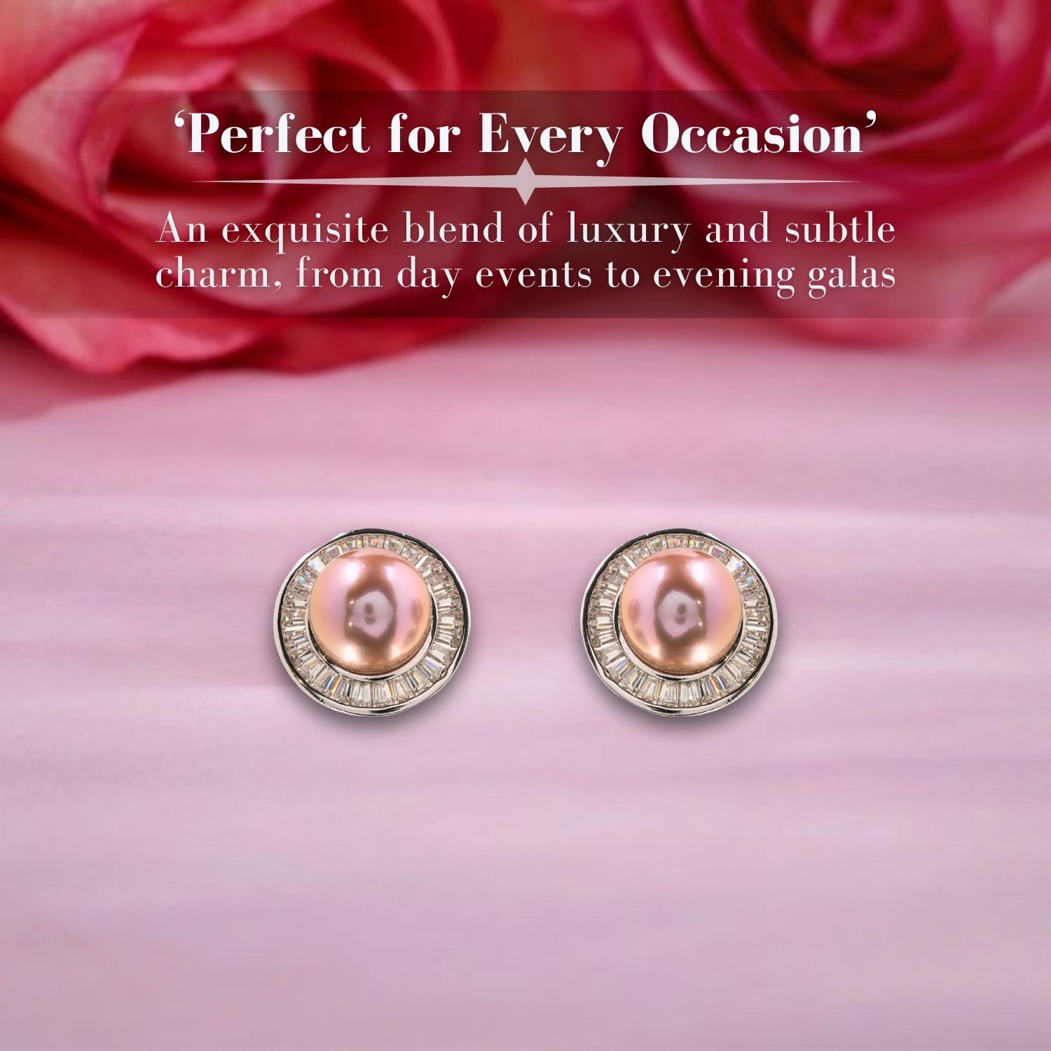 Pink Pearl Stud Earrings, Crystal Halo Pearl Studs, Elegant Wedding Jewellery, Classic Vintage Style Earrings, Gift for Her